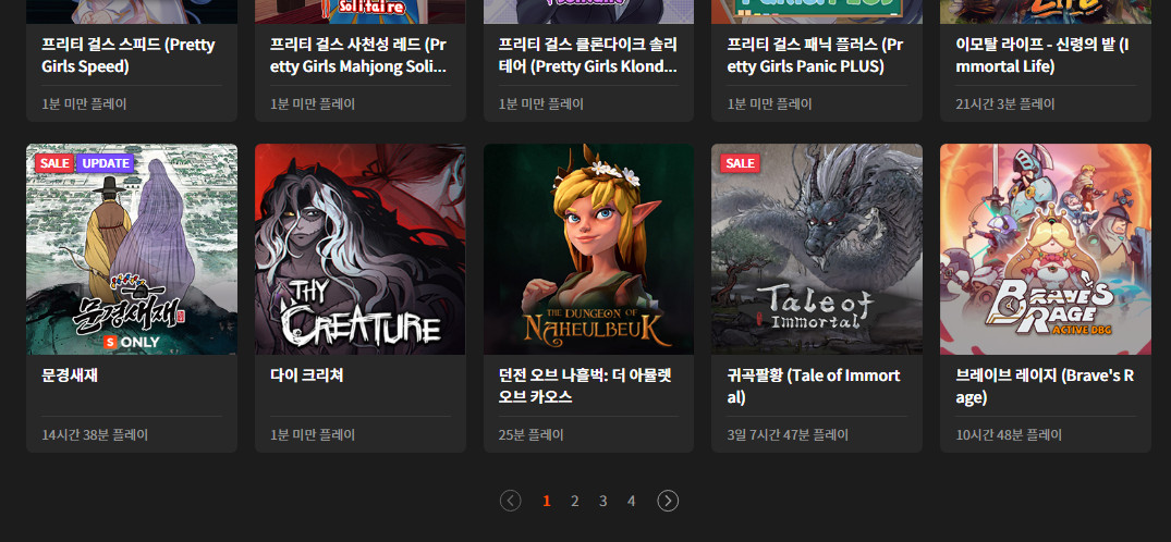 추가 : 구매 게임들 한 화면에 30개 씩 나오고 대충 세보니까 110개 조금 넘더군요