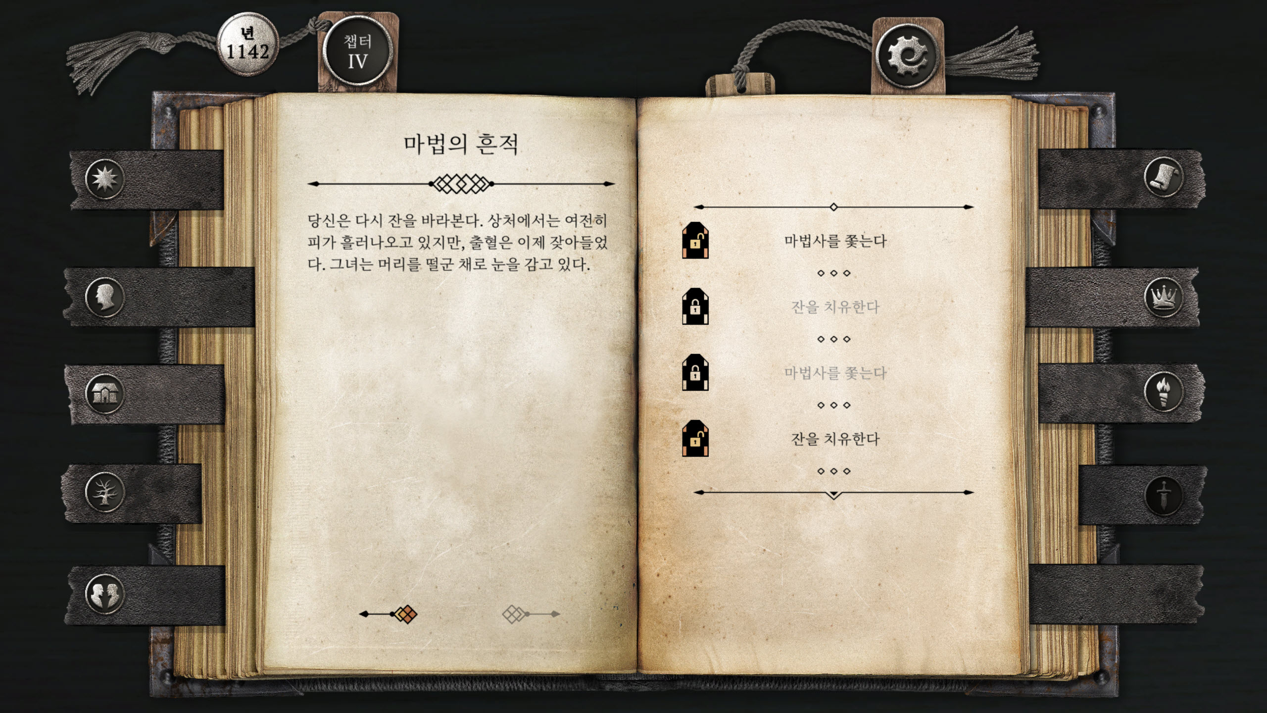 📌 '마법사를 쫓는다'와 '잔을 치유한다'는 선태지가 두 번 반복해서 출력되고 있고, 해금된 부분도 각기 다릅니다.