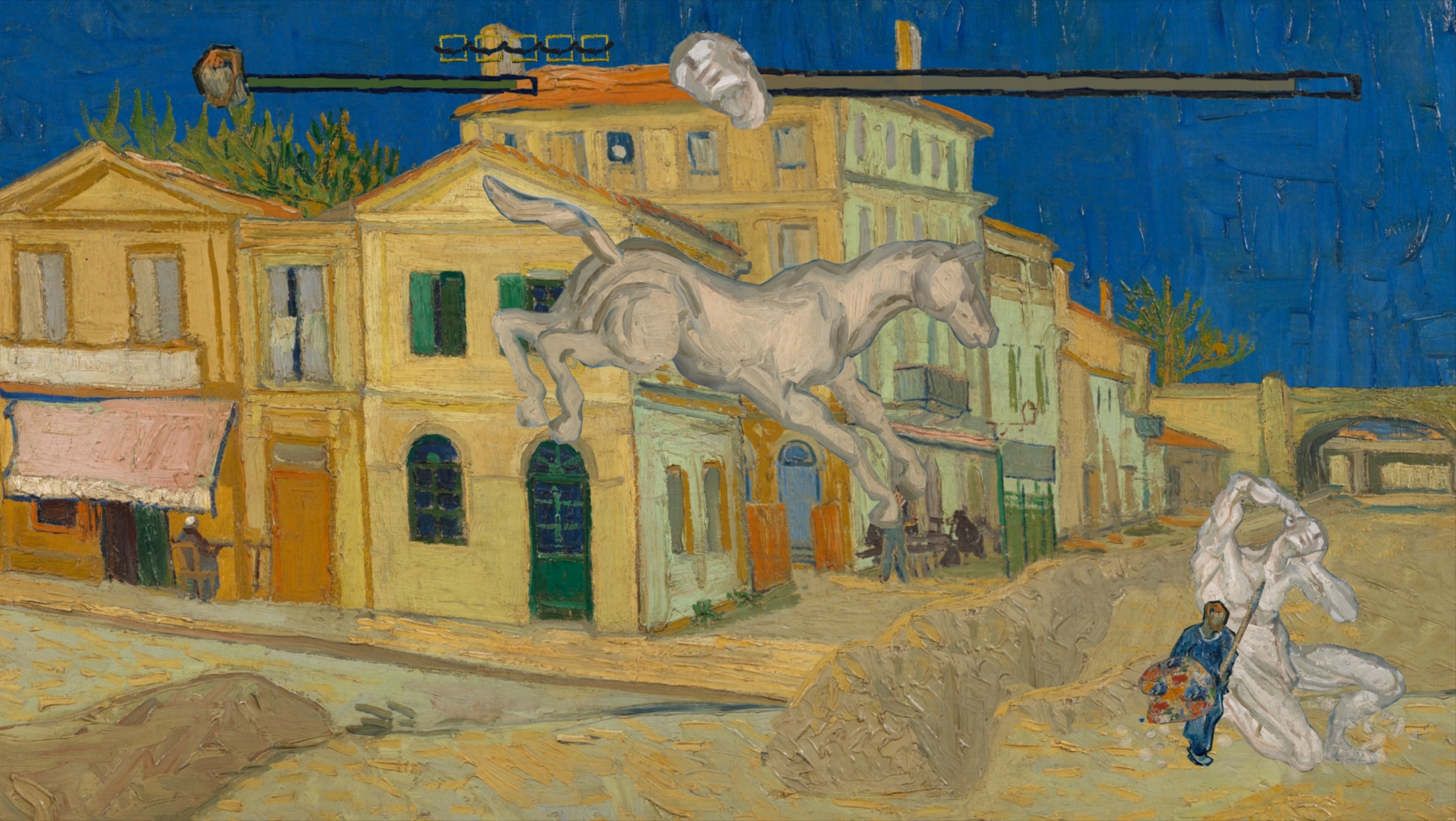 이 게임은 배경이 고흐의 작품들도 이루어져 보는 것만으로도 미술 공부를 하는듯한 기분이 드는데요. 그런 가운데 고흐가 붓과 파레트를 들고 비장하게 서있는 것을 보면 사뭇 생소한 기분이 들게 됩니다. 이게 무슨 일인가...