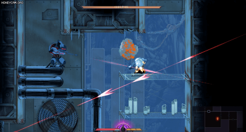 물론 이것은 초반에만 국한된 것으로 스테이지를 이어갈수록 추가되는 능력들로 인해서 점차 비선형으로 늘어나는 활동반경을 얻게 됩니다. 공중 대쉬부터 중력신발, 갈고리 등을 스테이지를 진행함에 따라서 얻게 되죠.