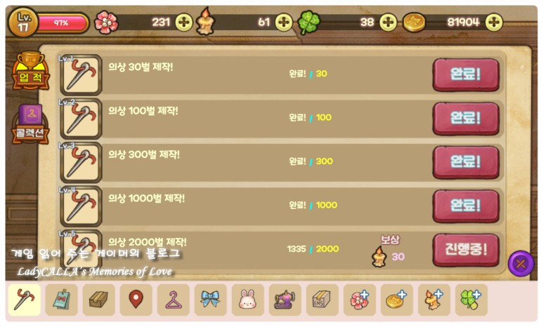 봉쥬르 부티크에는 다양한 업적 보상들도 존재하기 때문에, 수시로 업적 및 컬렉션 보상 메뉴를 확인하여 미처 수령하지 못 한 보상들을 챙기는 것도 잊지 말자.