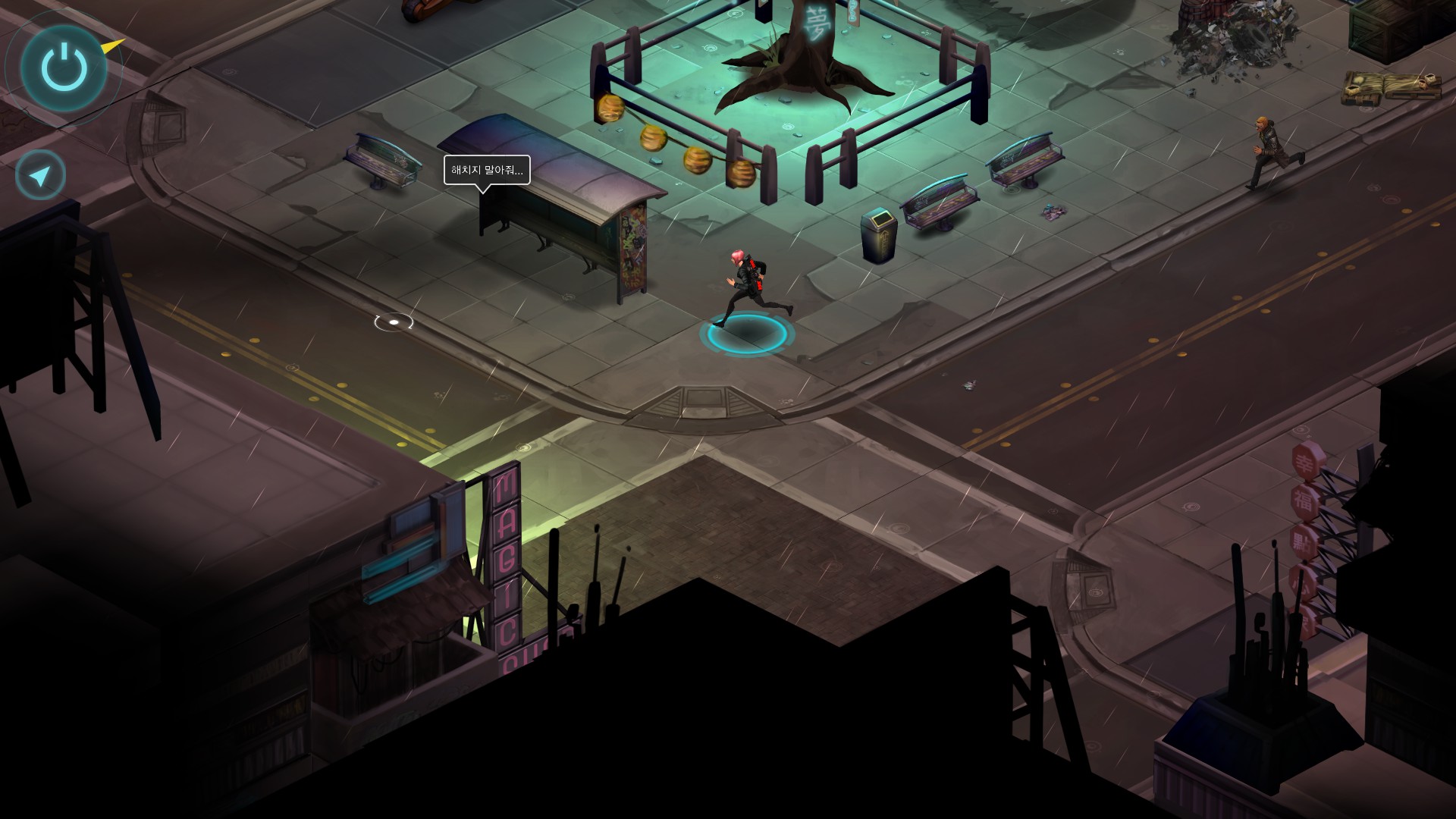 이 거리는 이 땅을 사들인 기업 말고, 그 누구의 것이 아닌데도 자신들의 구역이라고 사칭하는 할로위너 갱단 보초.