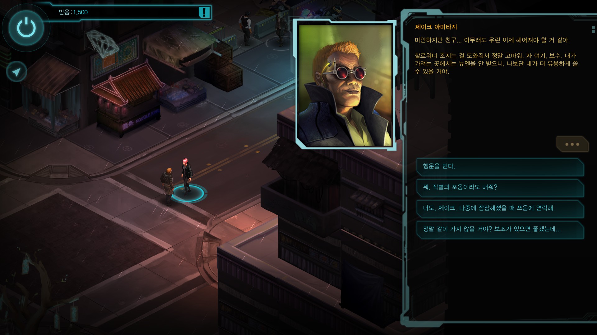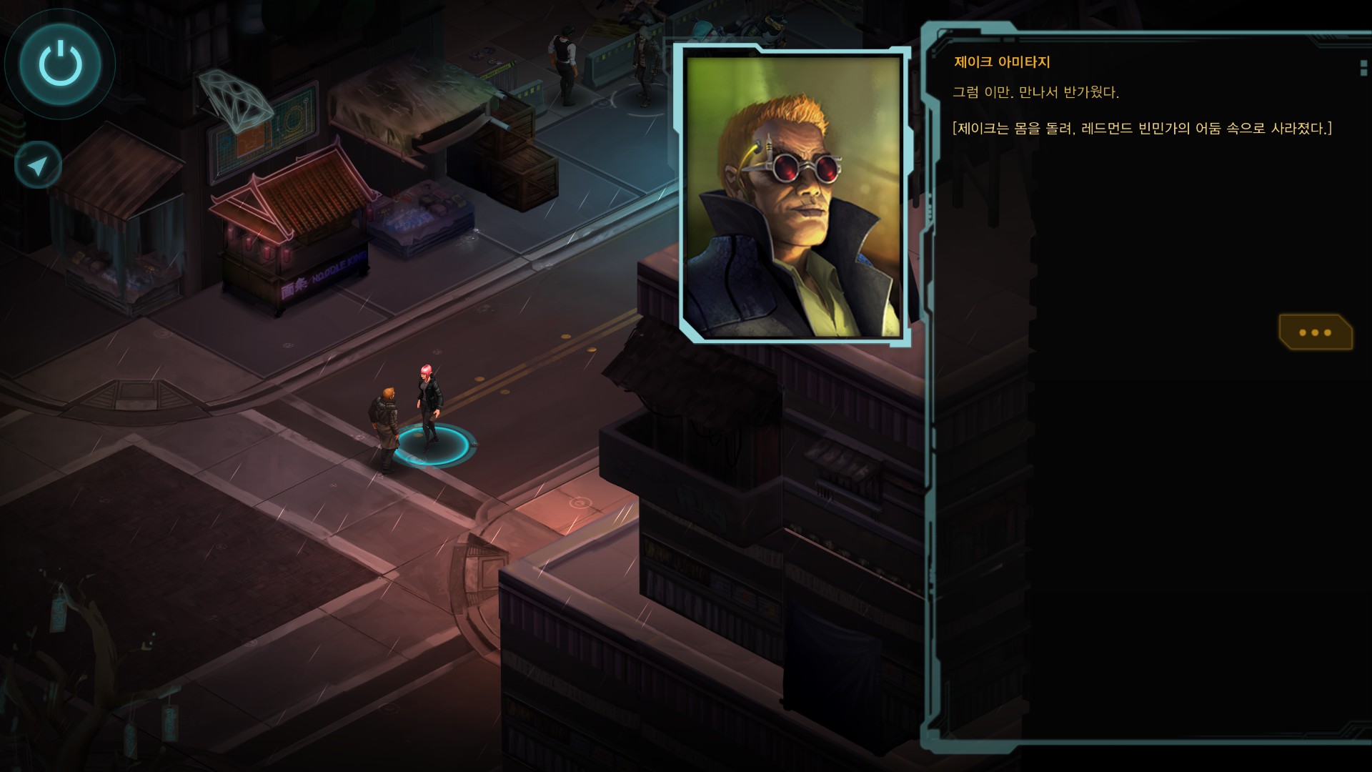 그렇게 자신이 할 말을 끝낸 제이크는 프로 섀도우러너이자 프로 현상범 수배자 답게 재빠른 속도로 도시 어둠 속으로 사라졌다.