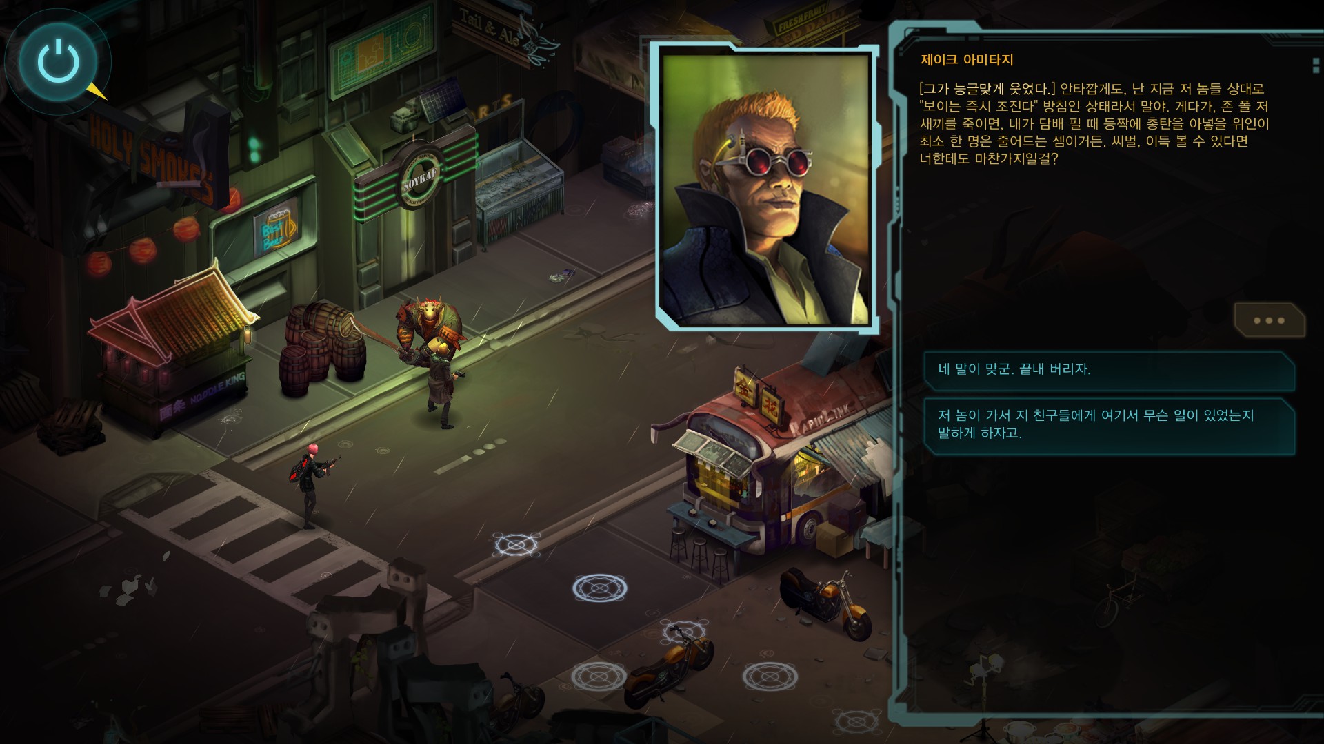 하지만 이미 목숨 구걸을 할 정도로 체력이 깎였고, 베테랑 섀도우러너인 제이크와 리아무 앞에서 그의 마지막 발악은 부질 없었다.