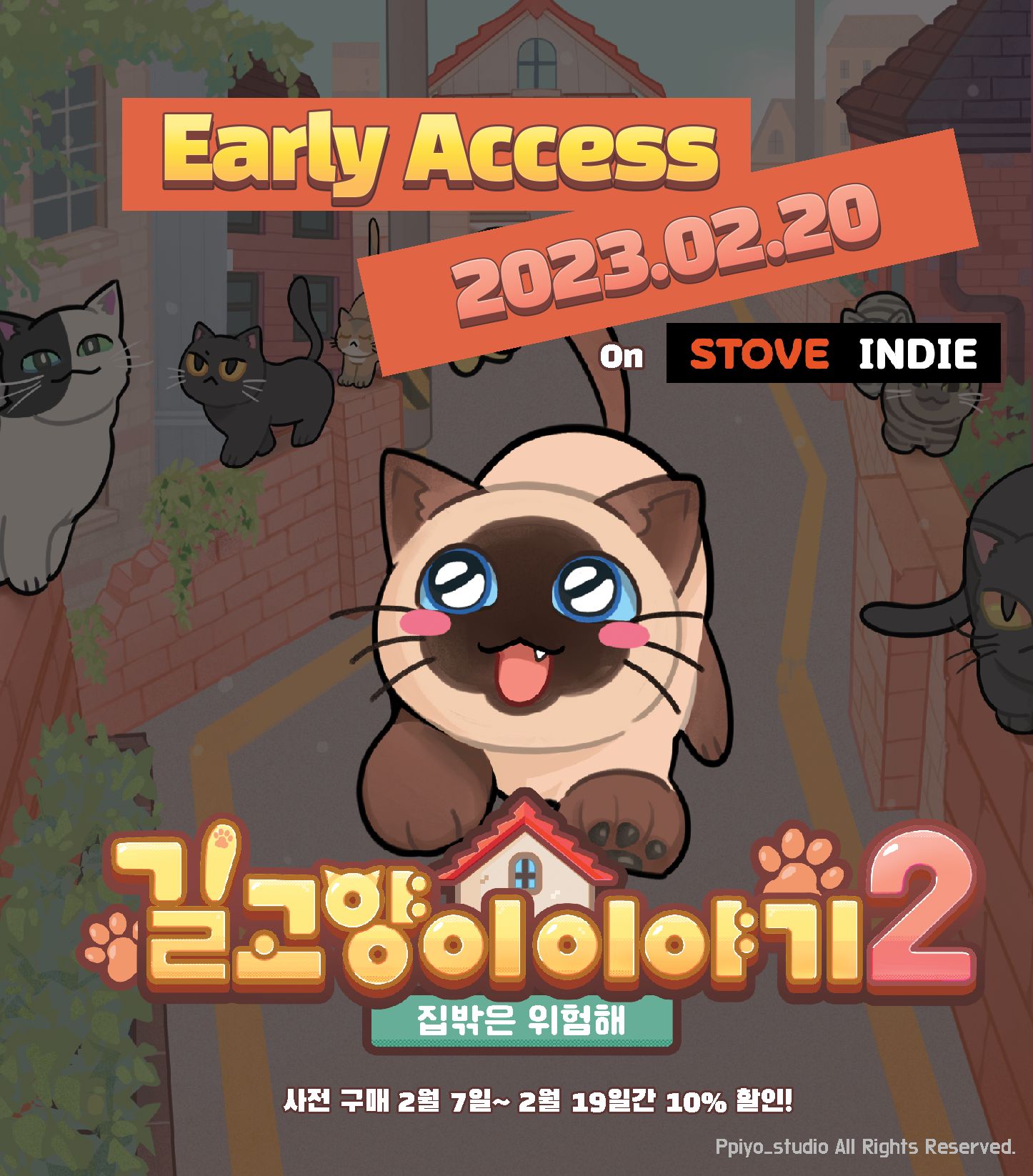 길 고양이 이야기2가 드디어 STOVE INDIE 독점 선공개로 얼리액세스 출시됩니다! 🎉🎉🎉🎉🎉