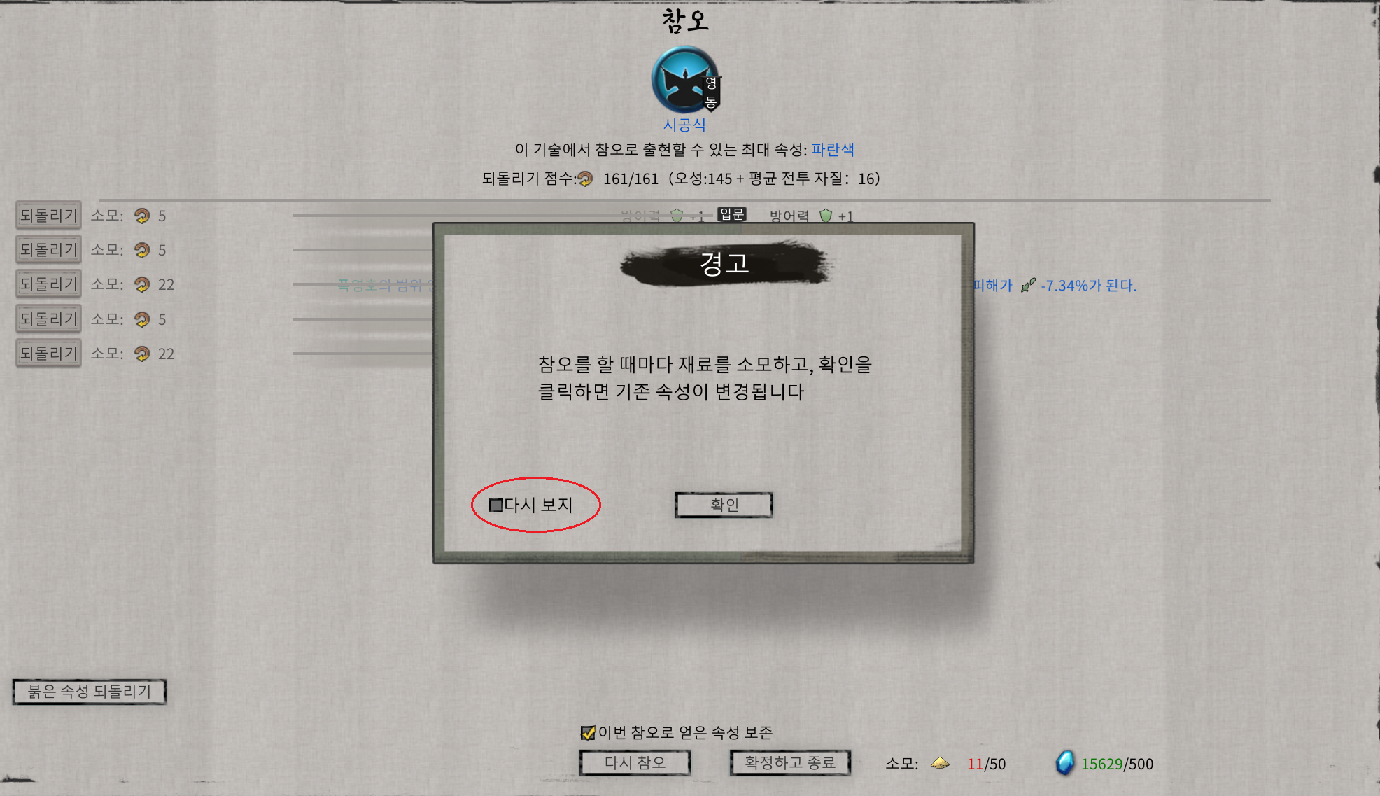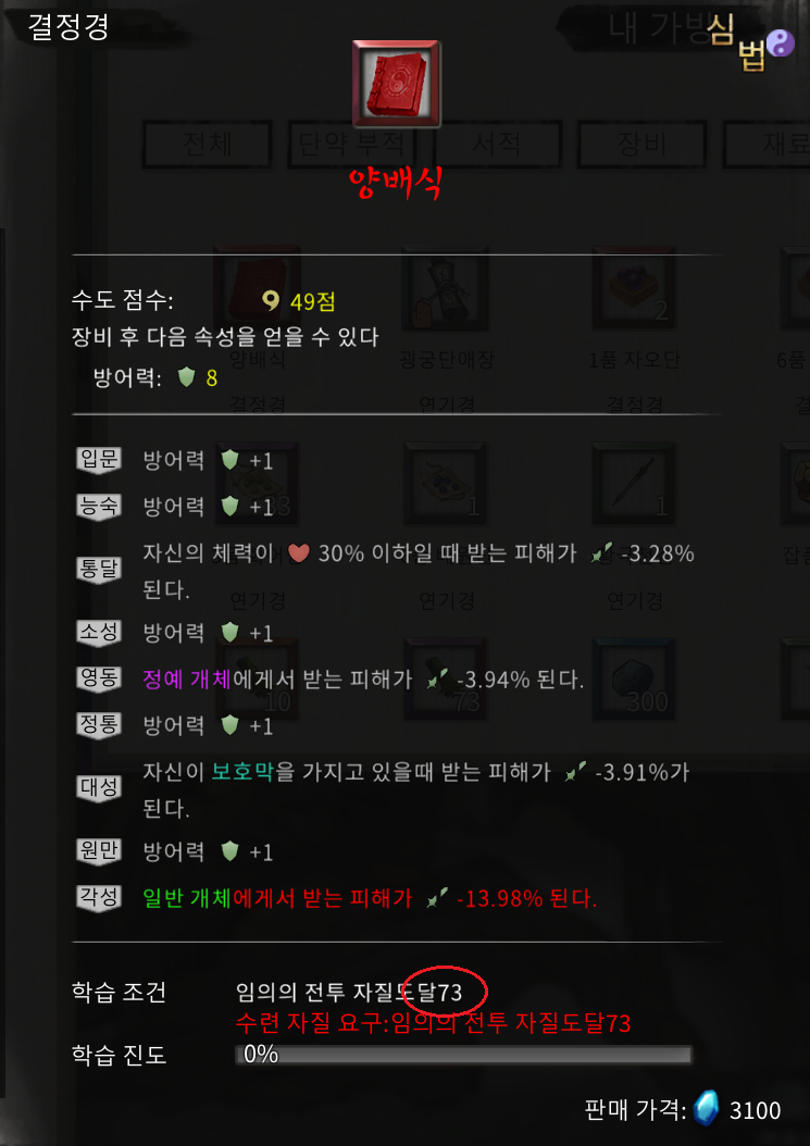 8. 무공 미리 보기에서 '목인장 숨기기'가 아니라 '목인장 표시'가 맞습니다.