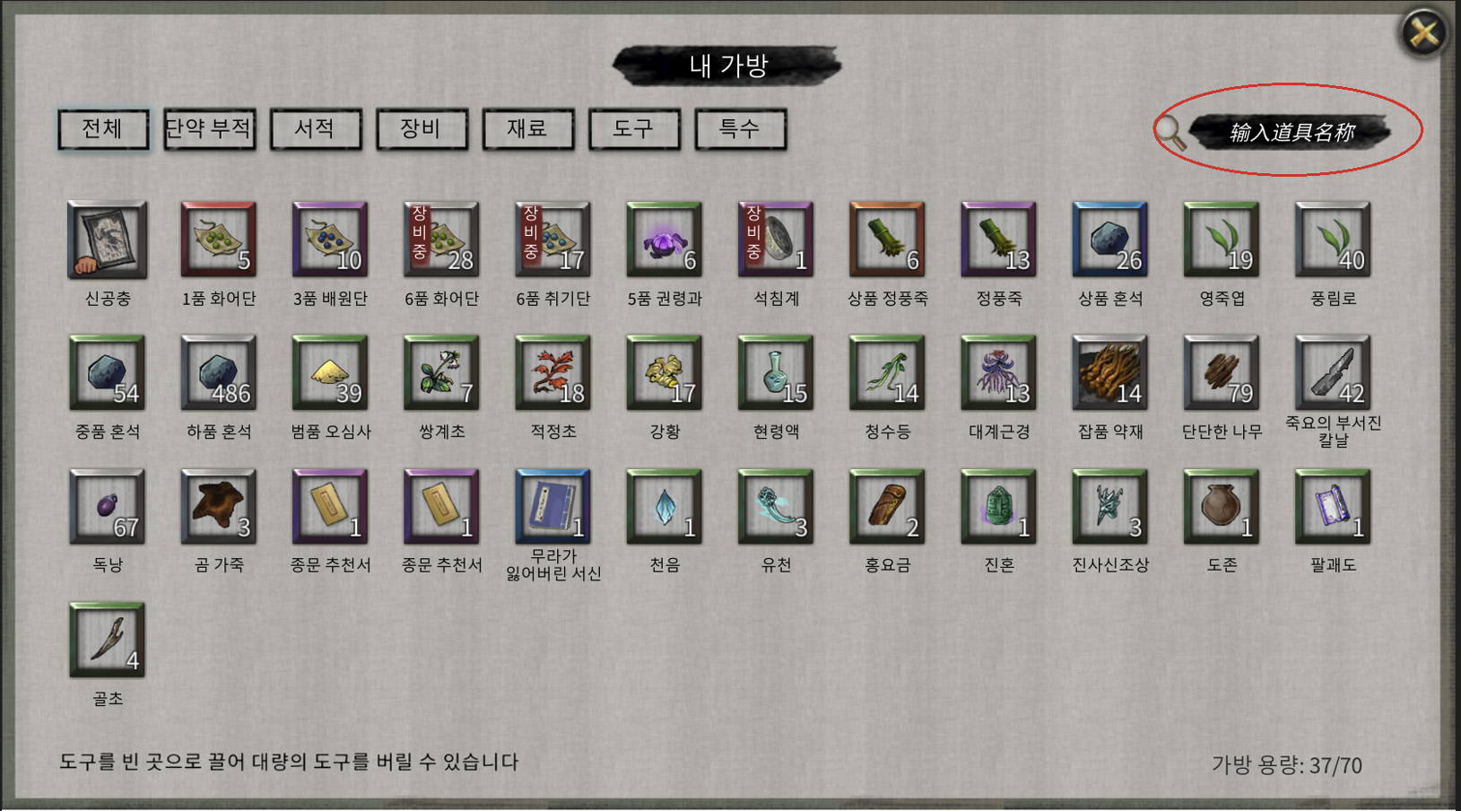 2. 가방을 열었을 때 검색창 미번역입니다.