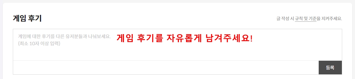 상점 페이지 '게임 후기'에 소감을 자유롭게 적어주세요.