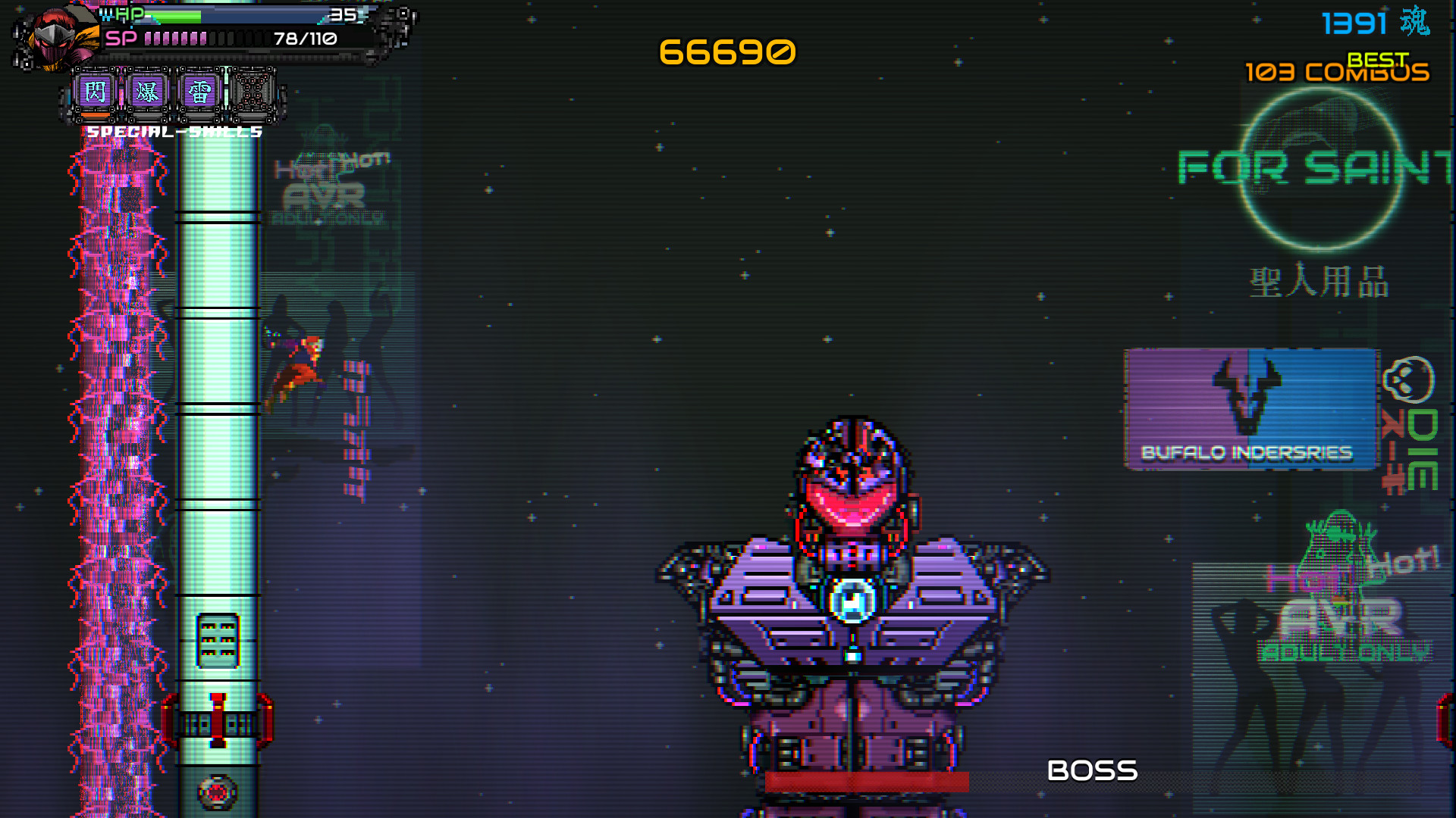 게다가 벽에 매달려서 일섬으로 팔만 파괴하는 식으로 싸울수도 있는등 공격의 자유도가 크게 올라갑니다.