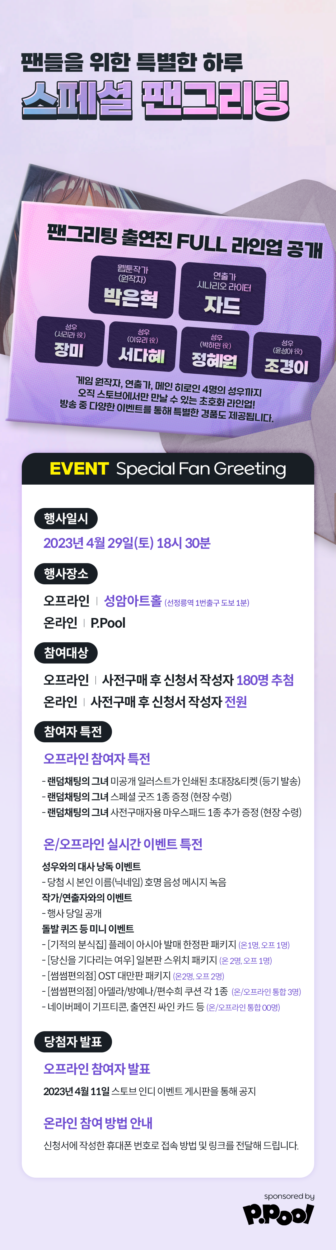 - Winner announcement: 3/23 (Mon)