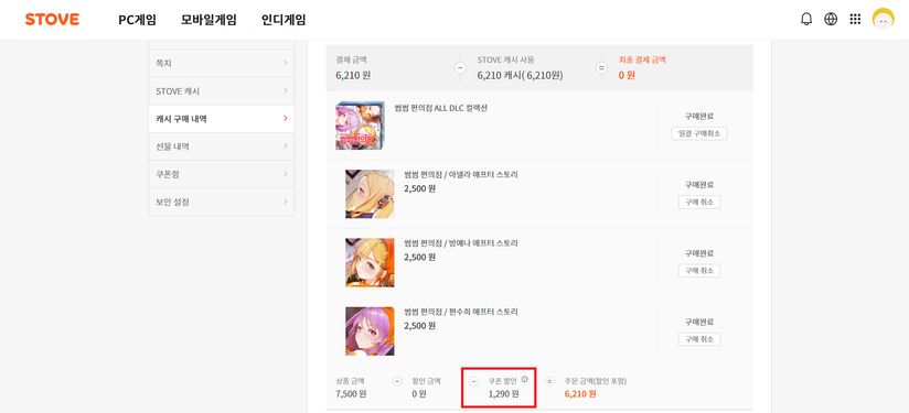 4월 스토브 핫위크 3종 쿠폰 및 랜덤채팅의그녀 사전구매 쿠폰까지 모두 모아서 구매!!!