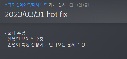 매번 패치 보기 위해 스팀에서 게임 페이지 찾아가 커뮤니티의 패치노트까지 찾아가야 한다는 건 좀 이상한 것 같습니다.