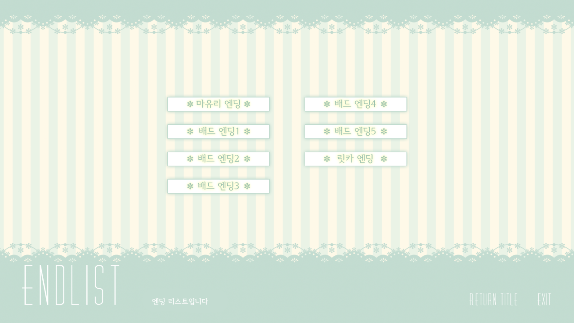 추리 파트에서의 선택지를 제외하고 보더라도 선택지 자체가 꽤 많은 편에 속하는 게임인데, 특이하게 추리 파트 선택지를 제외하면 우하단에 있는 동그라미 모양의 덩굴에 잠시 색이 비춰지는 것으로 자신이 고른 선택지가 어느 루트에 맞는 선택지인지 확인할 수 있습니다. 초록색이 점등되면 마유리 루트, 노란색이 점등되면 릿카 루트입니다. 또한 마유리 앤딩을 보기 전까지는 갤러리 오픈과 릿카 앤딩 진입이 불가능합니다.