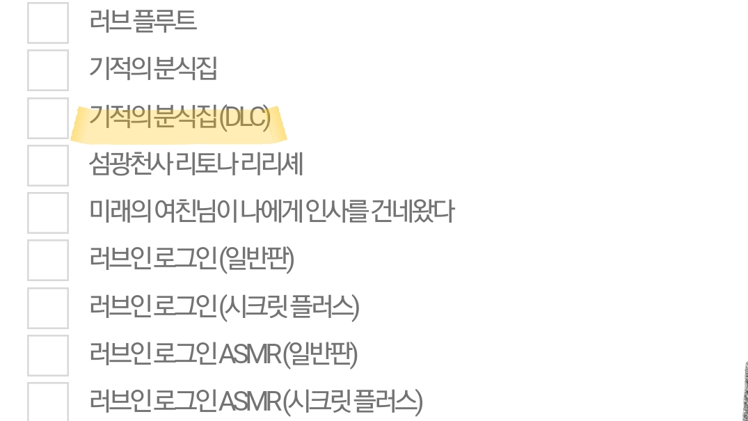 기적의 분식집dlc도 추가 되었으니 구매할 때 신청서에 없어서 체크 못 하신분들 재신청 하세요