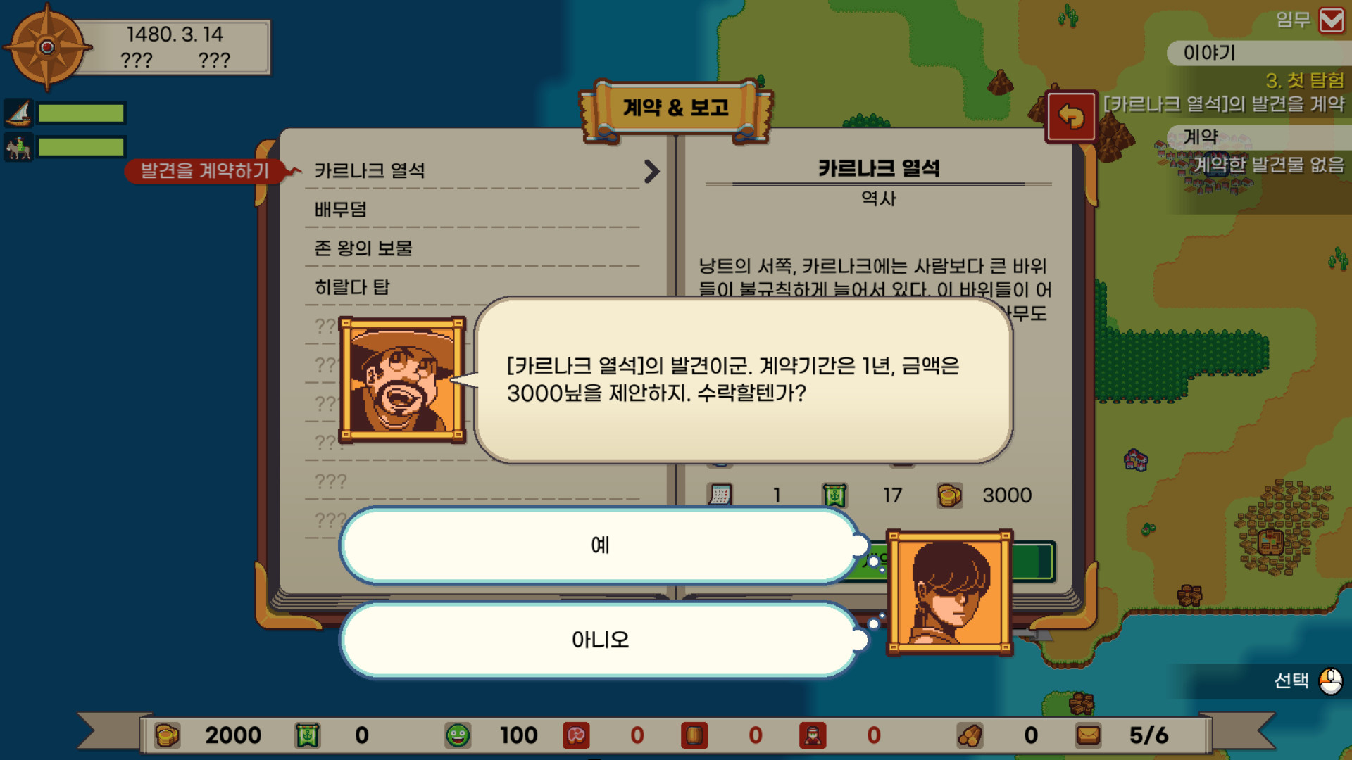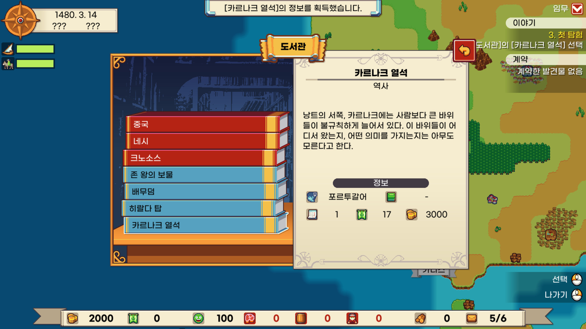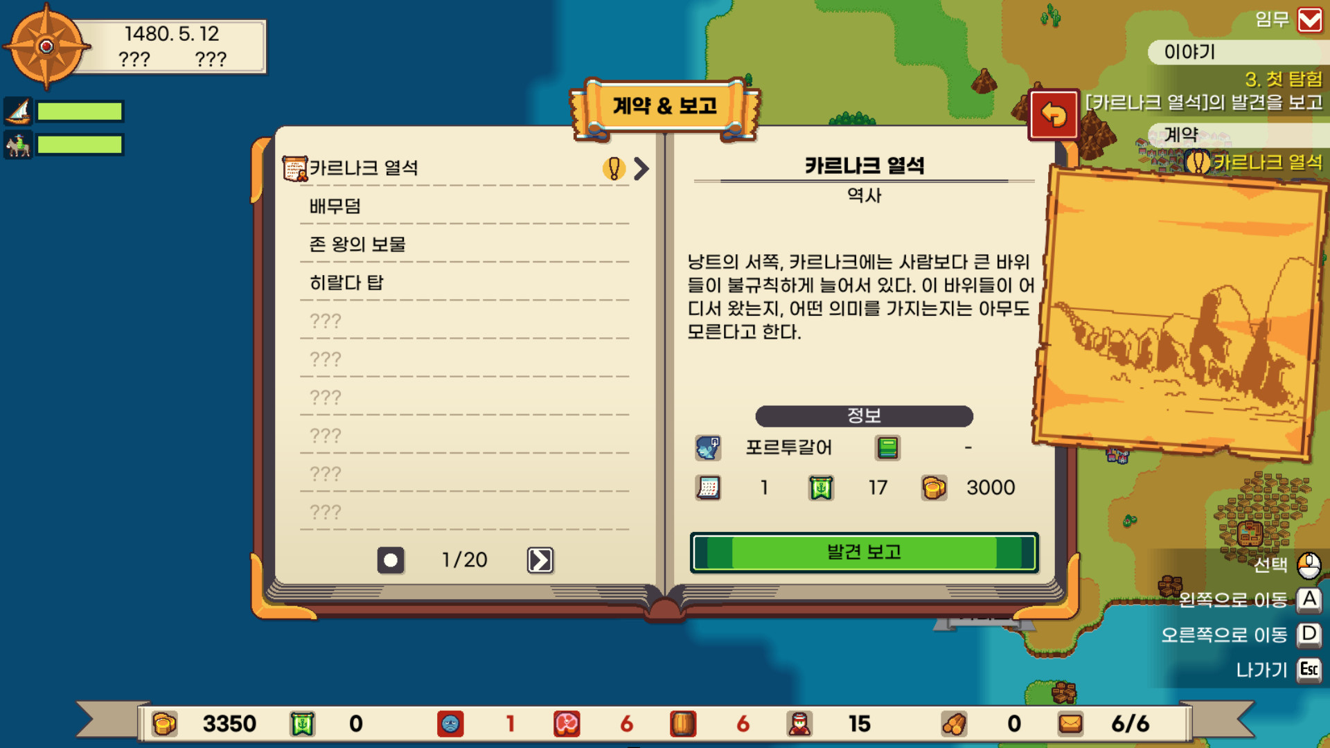 발견지 근처의 도시에 대한 힌트를 받으면서 발굴을 하려면 하나 발견할 때마다 다시 리스보아로 돌아가야 합니다. 스토리가 진행되면 꽉꽉이를 통해서 조합에서 바로 발견 보고가 가능하지만 그전까지는 너무 불편합니다.