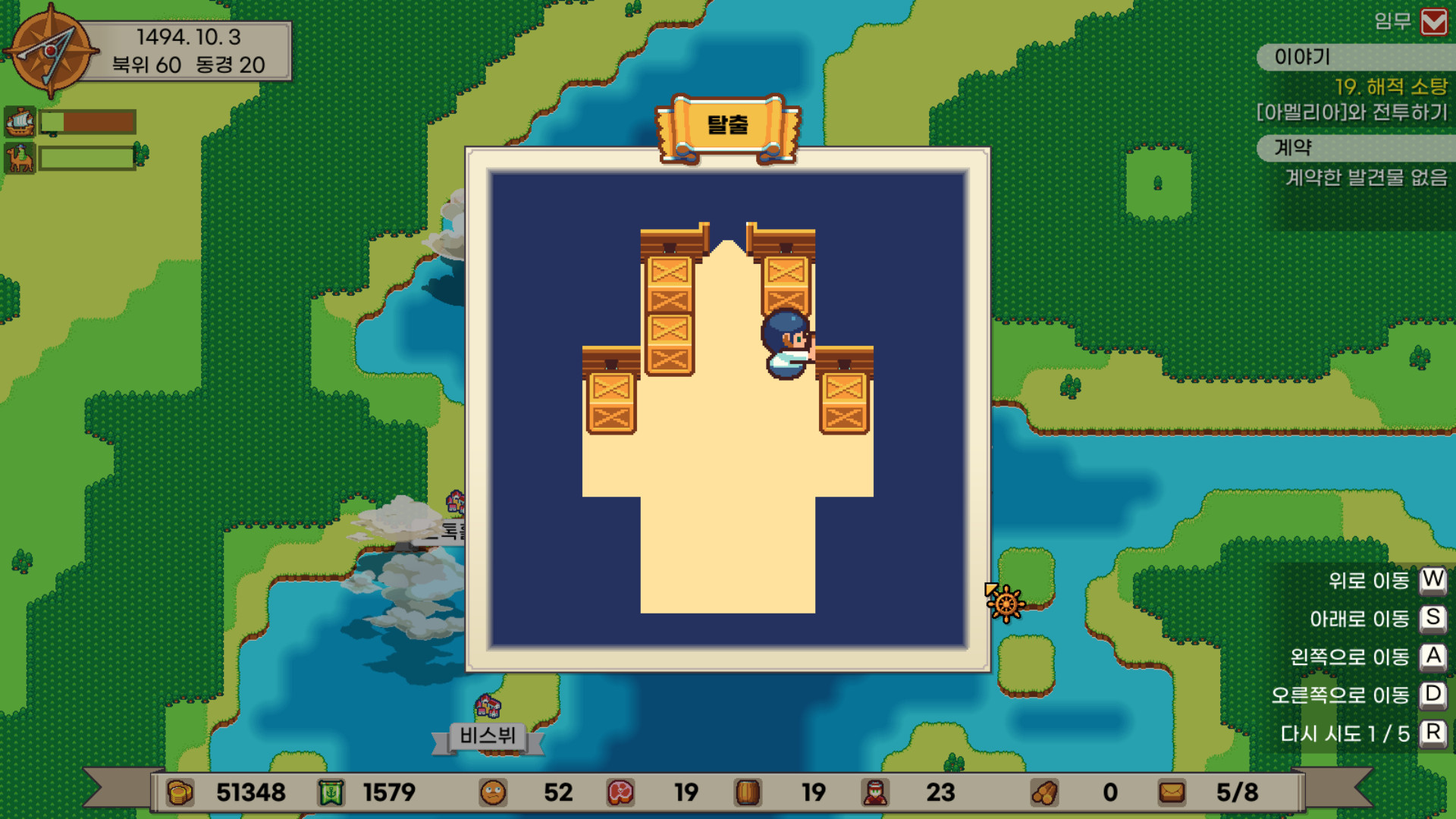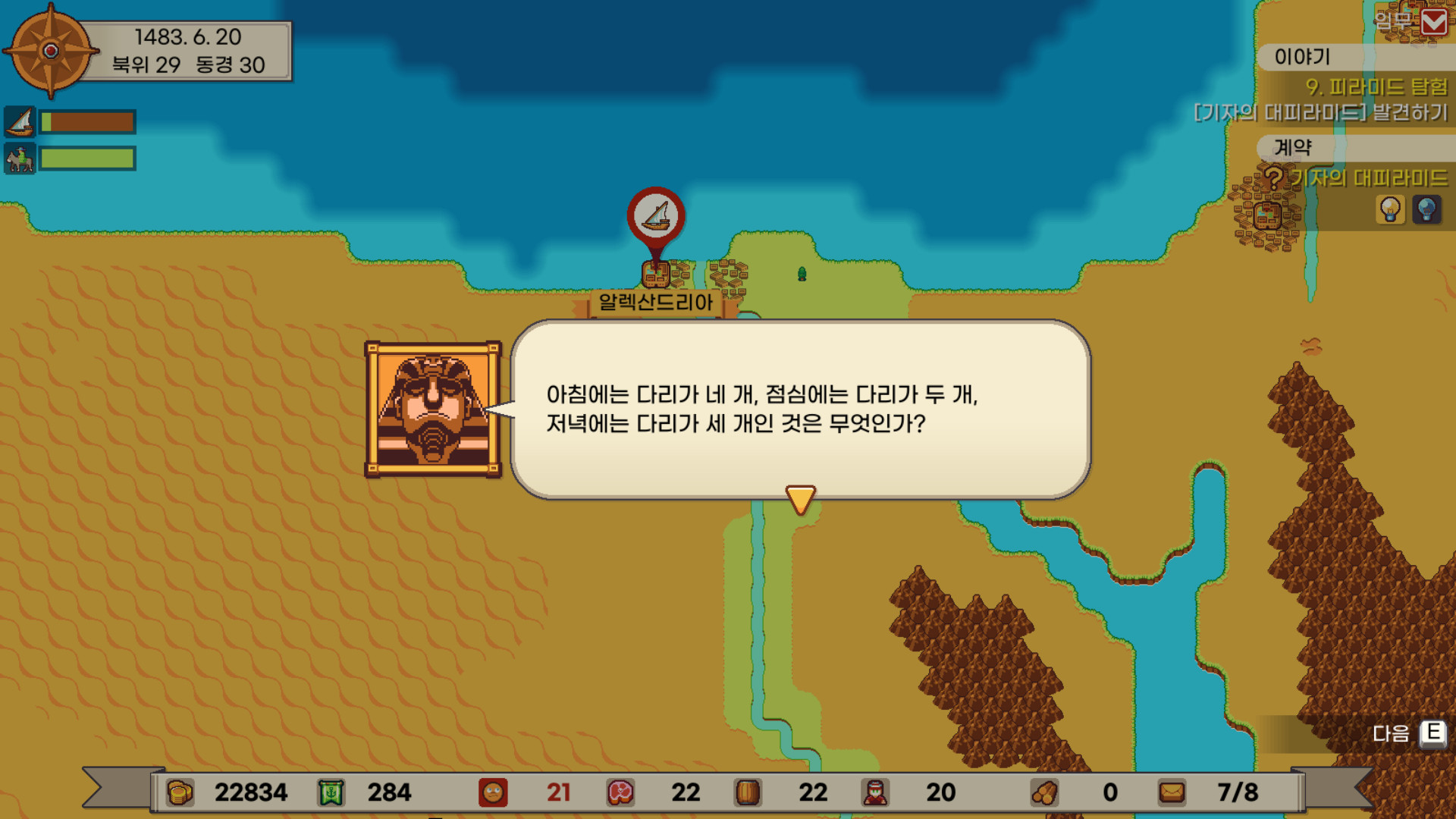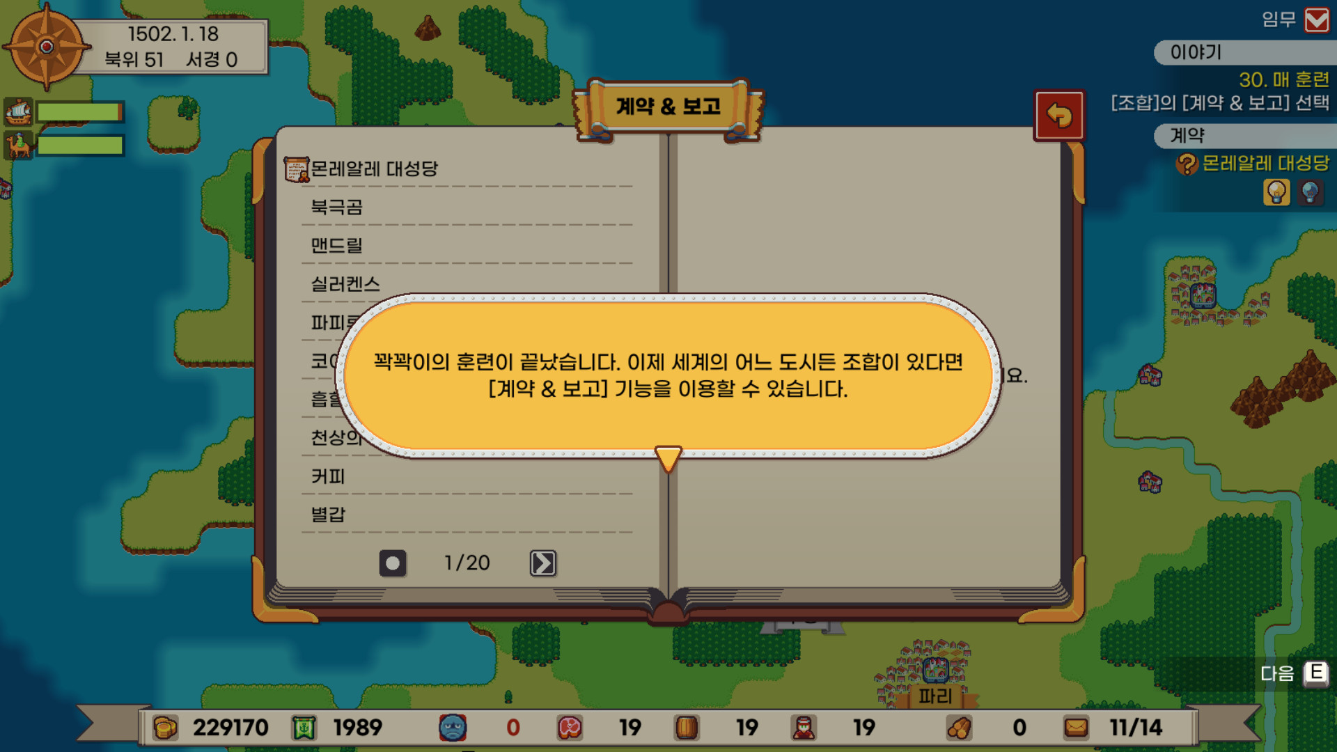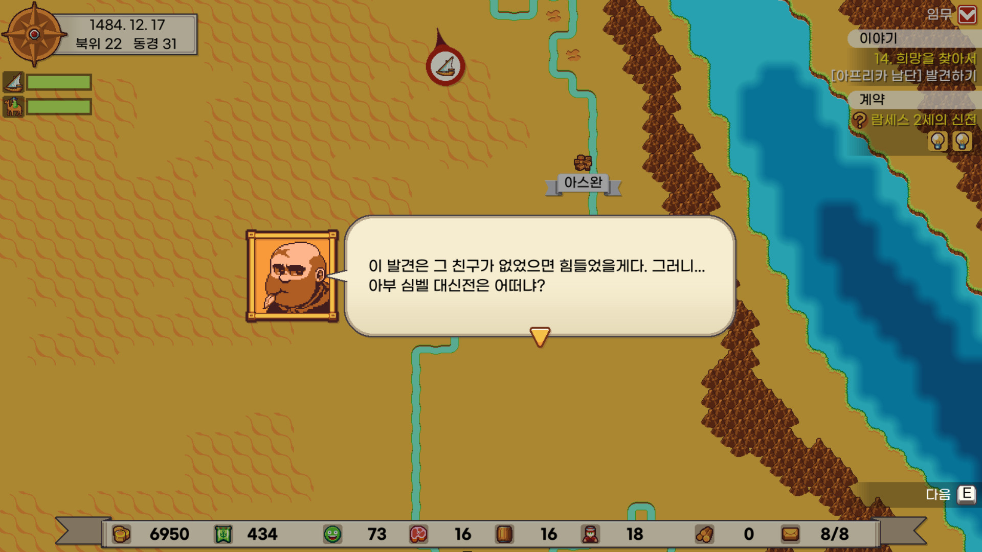 발견지 근처의 도시에 대한 힌트를 받으면서 발굴을 하려면 하나 발견할 때마다 다시 리스보아로 돌아가야 합니다. 스토리가 진행되면 꽉꽉이를 통해서 조합에서 바로 발견 보고가 가능하지만 그전까지는 너무 불편합니다.