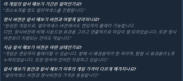 앞서 해보기에서 지적되는 피드백을 바탕으로 연출이나 시스템의 완성도를 올린다고 한 만큼 앞으로 발전된 모습을 보여주길 바라면서 리뷰를 마치겠습니다.