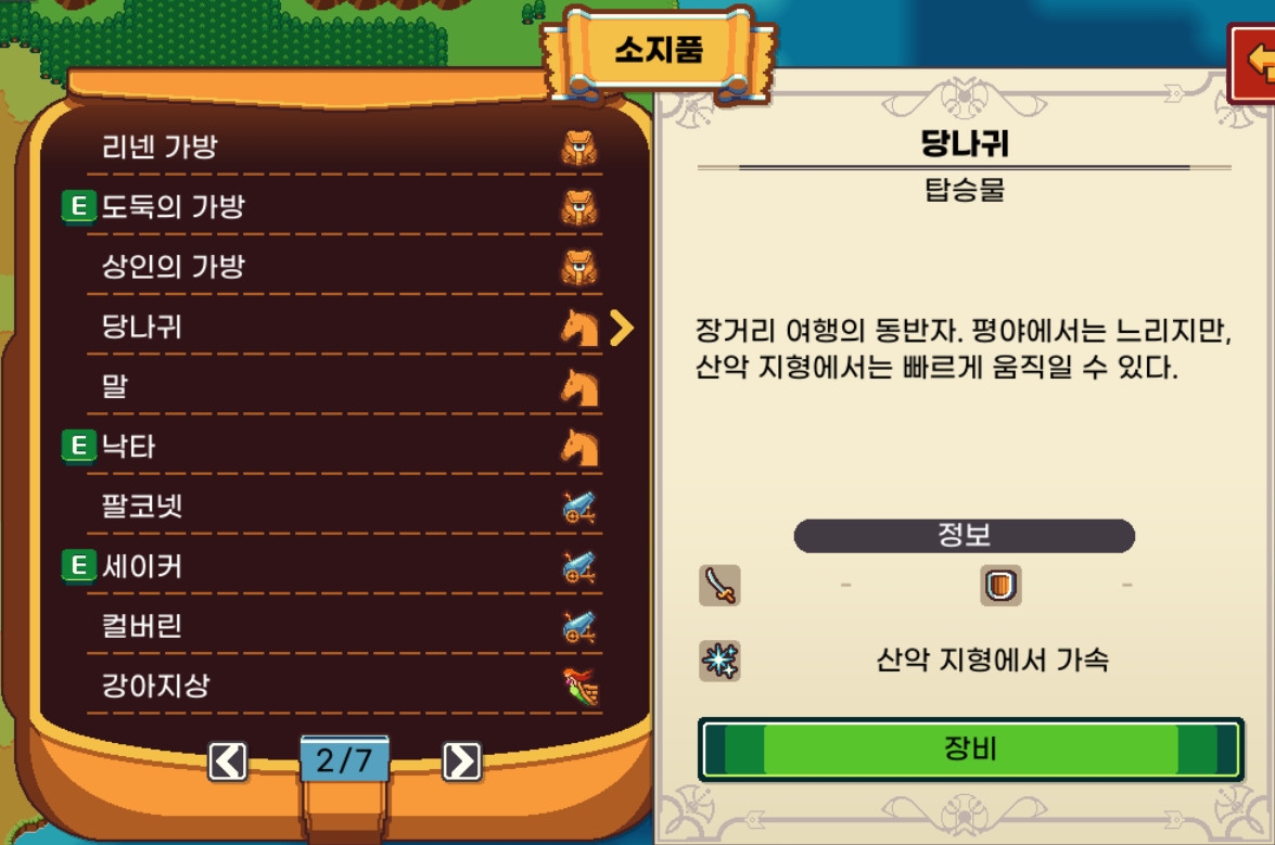 이외에도 이동을 도와주는 말, 당나귀, 낙타 역시 이동 보너스를 받는 지형마다 계속 바꿔줘야만 이동속도 버프를 받을 수 있다 보니 이동 지형에 따라서 계속 바꿔줘야 합니다. 이 역시 간소화 시킬 필요가 있지 않나 합니다.