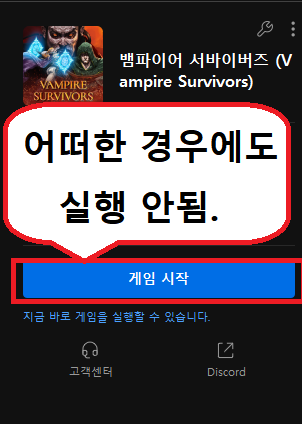 게임이 실행되지 않습니다.