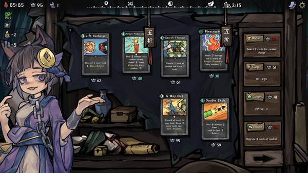 게임 제목은 항요산기 (降妖散记, Yao-Guai Hunter)로 전형적인 로그라이크 덱 빌딩 게임입니다.