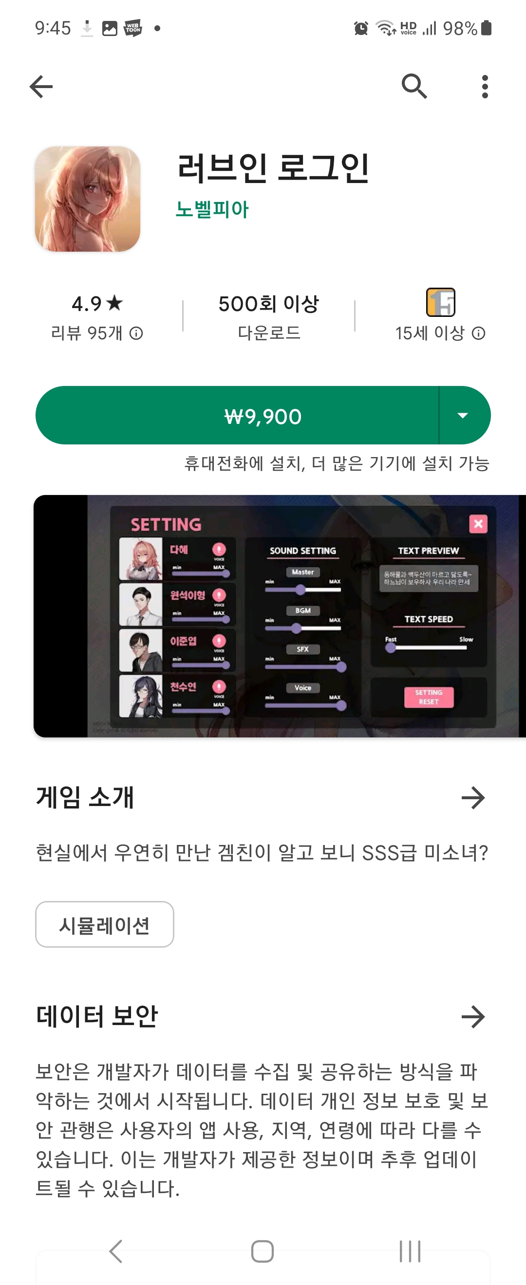 그리고 원스토어 버전은 11000원, play 스토어 버전은 9900원입니다. 물론 버전이 다르기에 나름 납득 가능한 정도입니다.