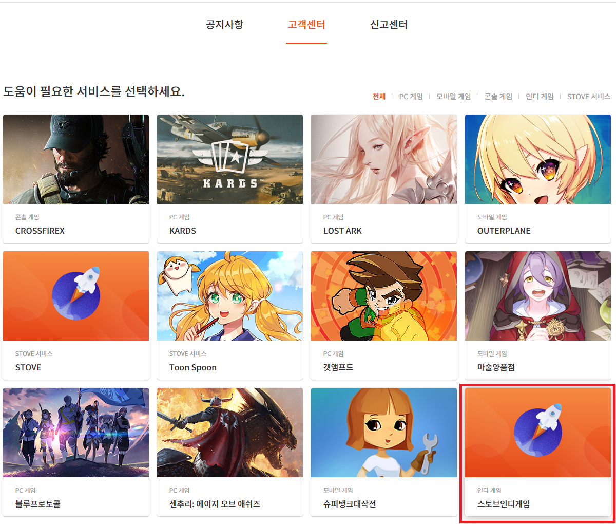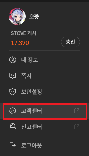 ㄴ 스토브인디 하단 또는 프로필 화면을 클릭해 고객센터를 클릭해줍니다.
