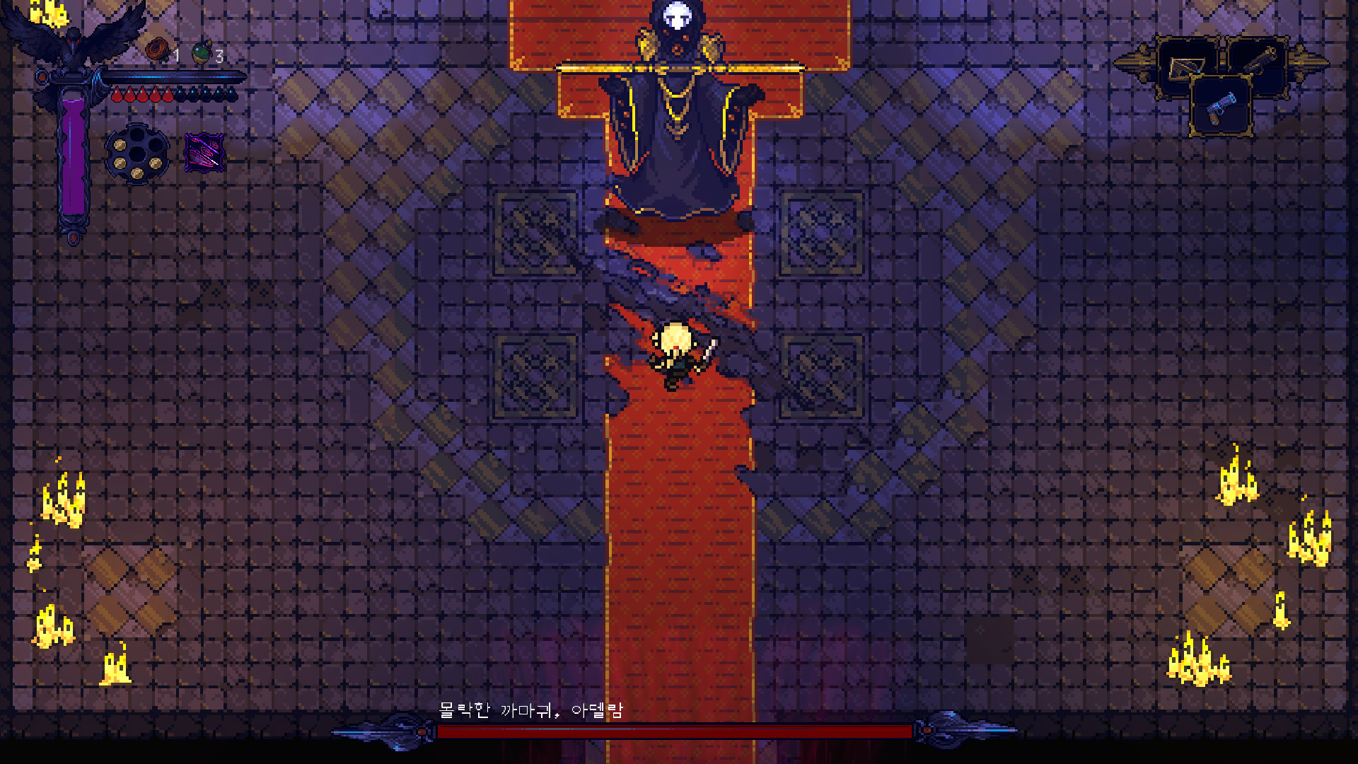 그리고 무기를 던진 다음에는 다른 행동을 하지 않고 잠시 정지해 있기 때문에 익숙해지면 보스쪽으로 달려가서 회피로 공격을 피하고 공격을 하는 식으로 싸울수도 있습니다. 무기로 주변을 긁기 시작하면 무조건 거리를 최대한 띄우세요 조금만 스쳐도 위험합니다.