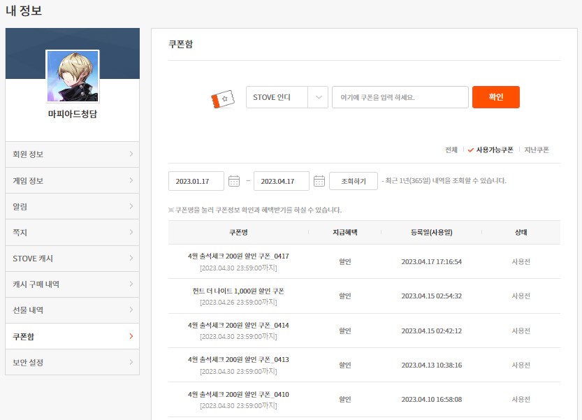 오... 맨날 구매창 가서 쿠폰 확인 했는데 저기도 되네요