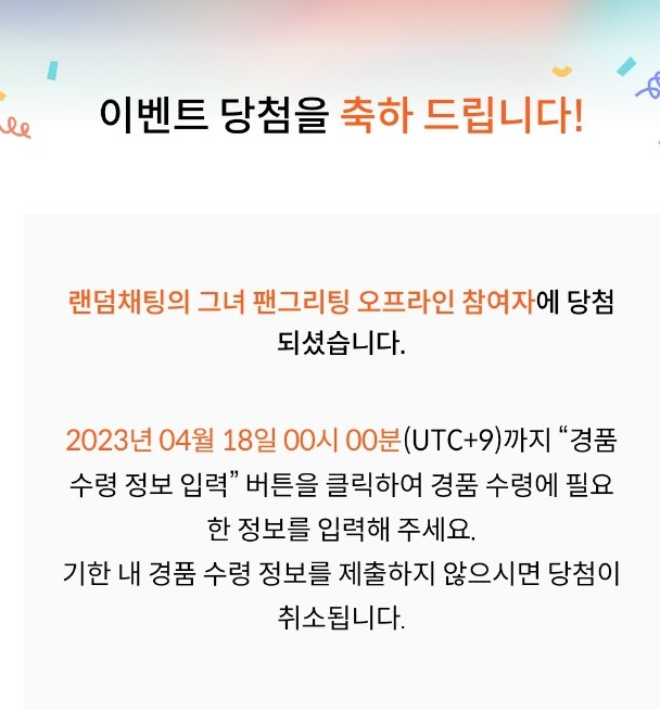추가 당첨되면서 알게된 사실인데.. 처음에 오프라인 당첨자라고 화면 나오는 이 화면..