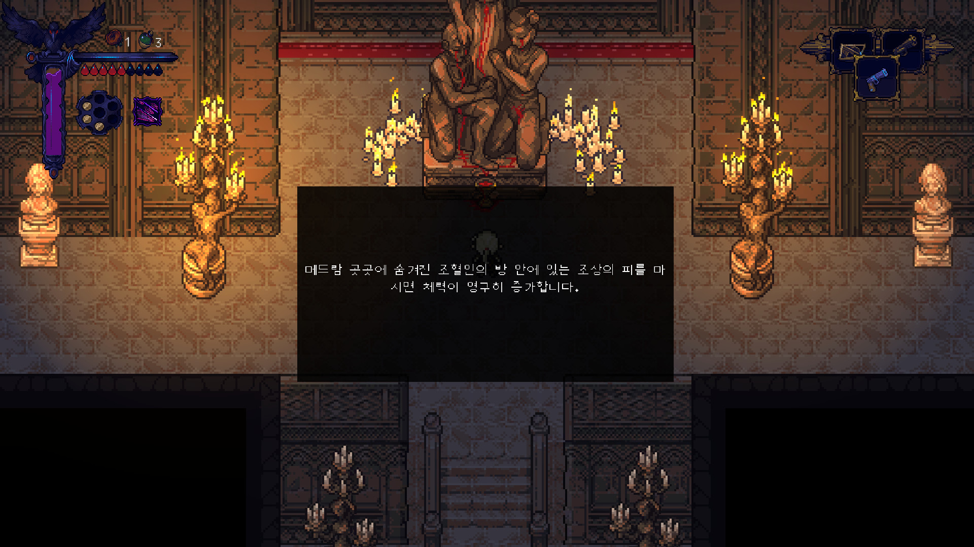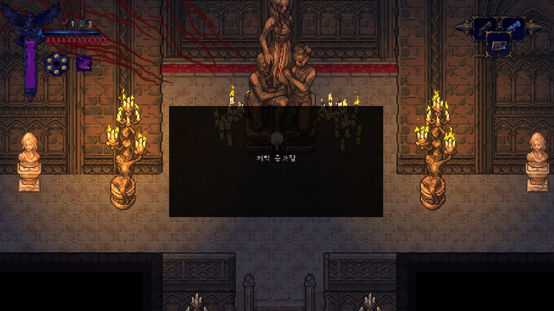 정말 별거 아닌것 같지만 게임 시스템 상 최대 체력 말곤 다른 능력을 올릴 수 없어서 안 올려 두면 앞으로 진행이 정말 힘들어 집니다.