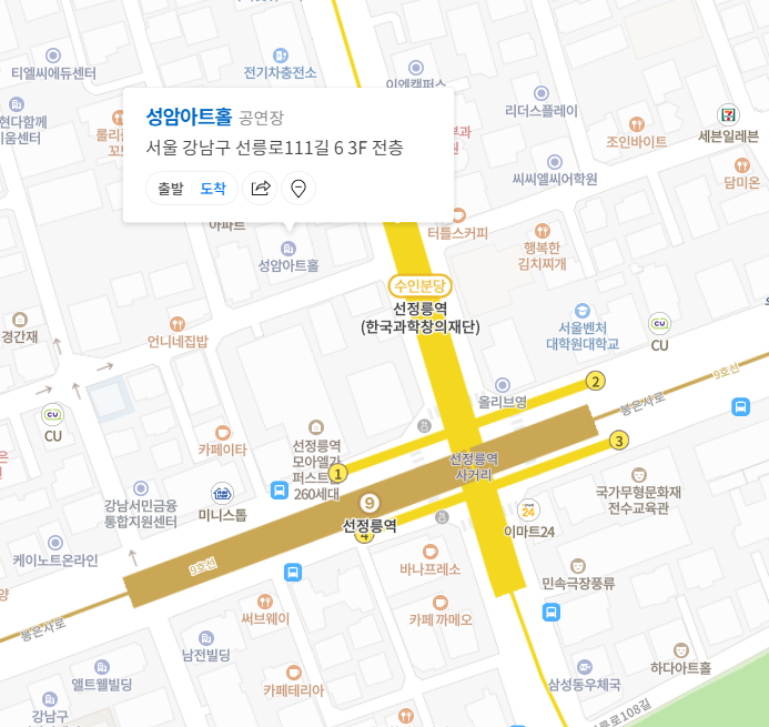 선정릉역 1번 출구에서 도보로 약 2분