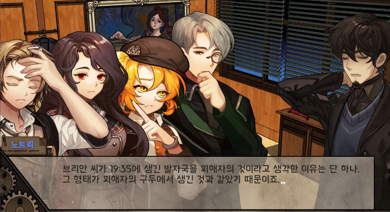 다음 대사는 캡처를 못해서 로고를 캡처 해왔습니다. 다음 대사또한 흔적 사진에서 단서를 활용하는 것인데, 19:35에 해당하는 증거가 없으므로 다음 대사의 시각 또한 20:35으로 고치는 것이 맞다고생각니다.
