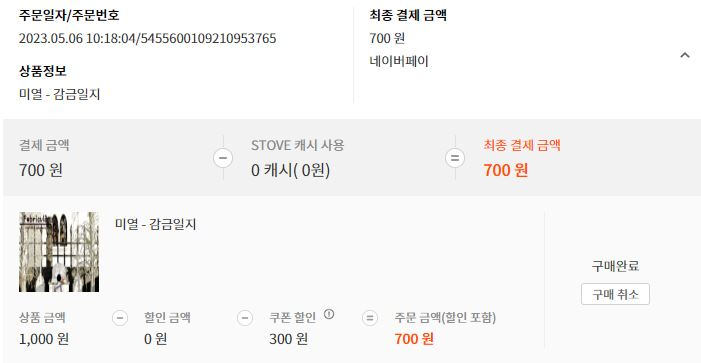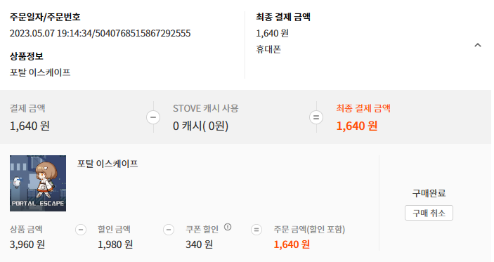 중복 불가 17% 쿠폰이랑 스토브 인디 캐시 840원으로 구매했어요.
