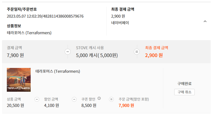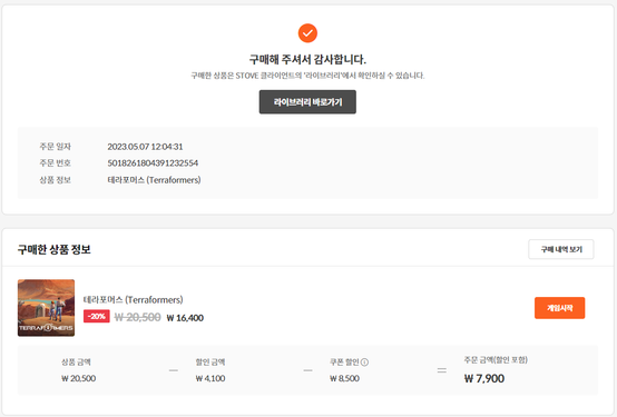 5월달에 써드 파티 쿠폰이 있기에 테라포마스 DLC를 7천원대에 구매할 수 있었지만 8천원대로 맞춰 이벤트 참여했네요 ㅎㅎ