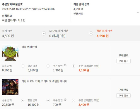 중복할인 받아서 신규 게임인데도 약 25% 할인 받음