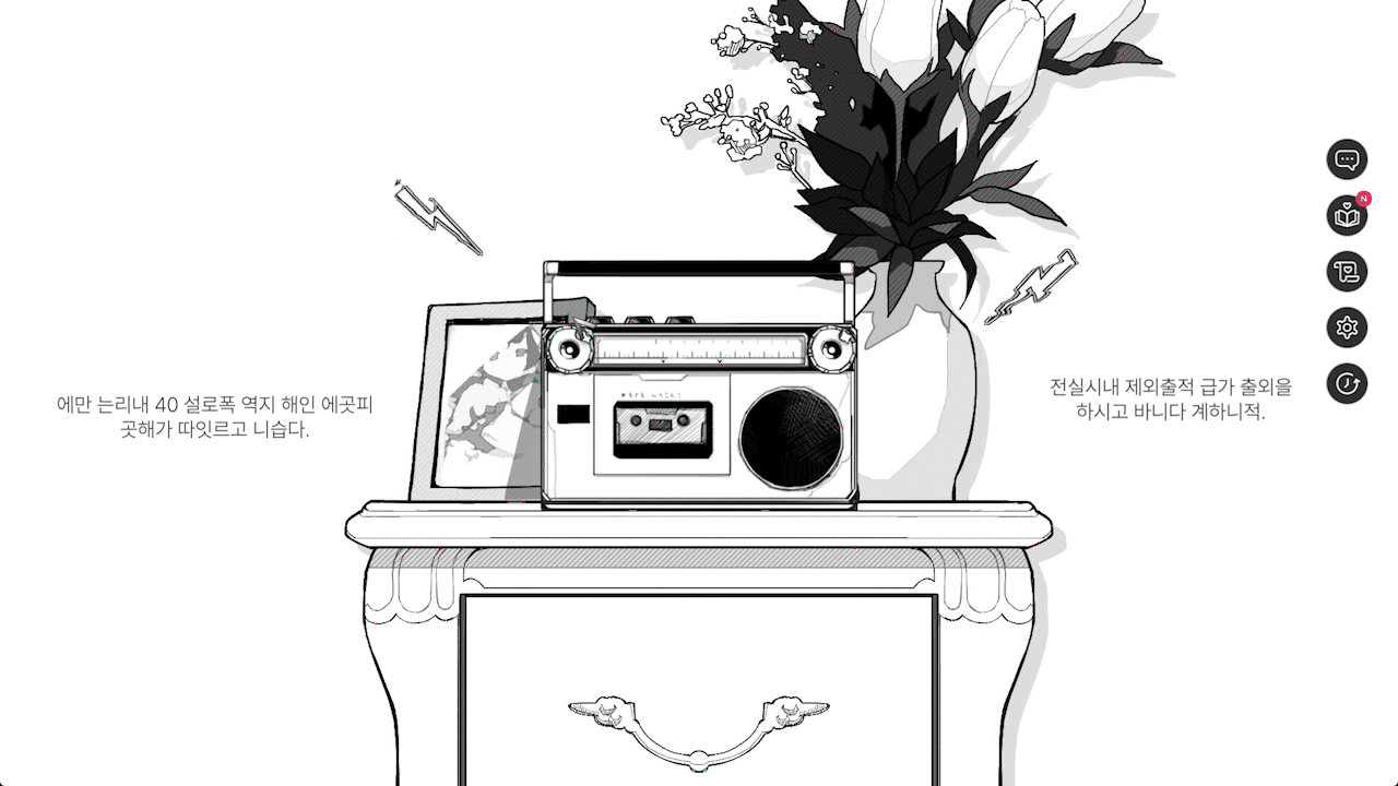 소설 책을 읽는 듯 한 게임으로 게임 내 BGM이 정말 좋고, 연출 또한 좋아서 몰입감 있게 게임 플레이 하였습니다.