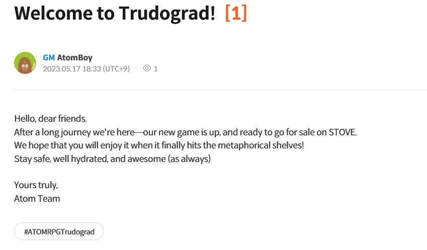 어제 Atom rpg 커뮤니티에 이런 글이 떴어요.
