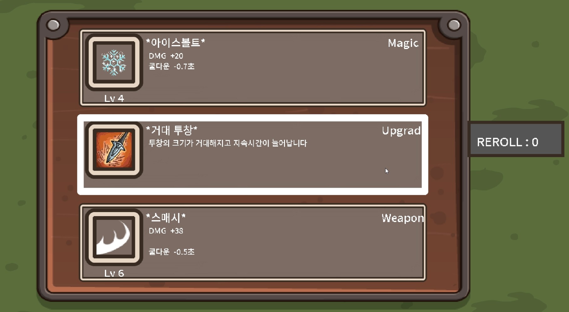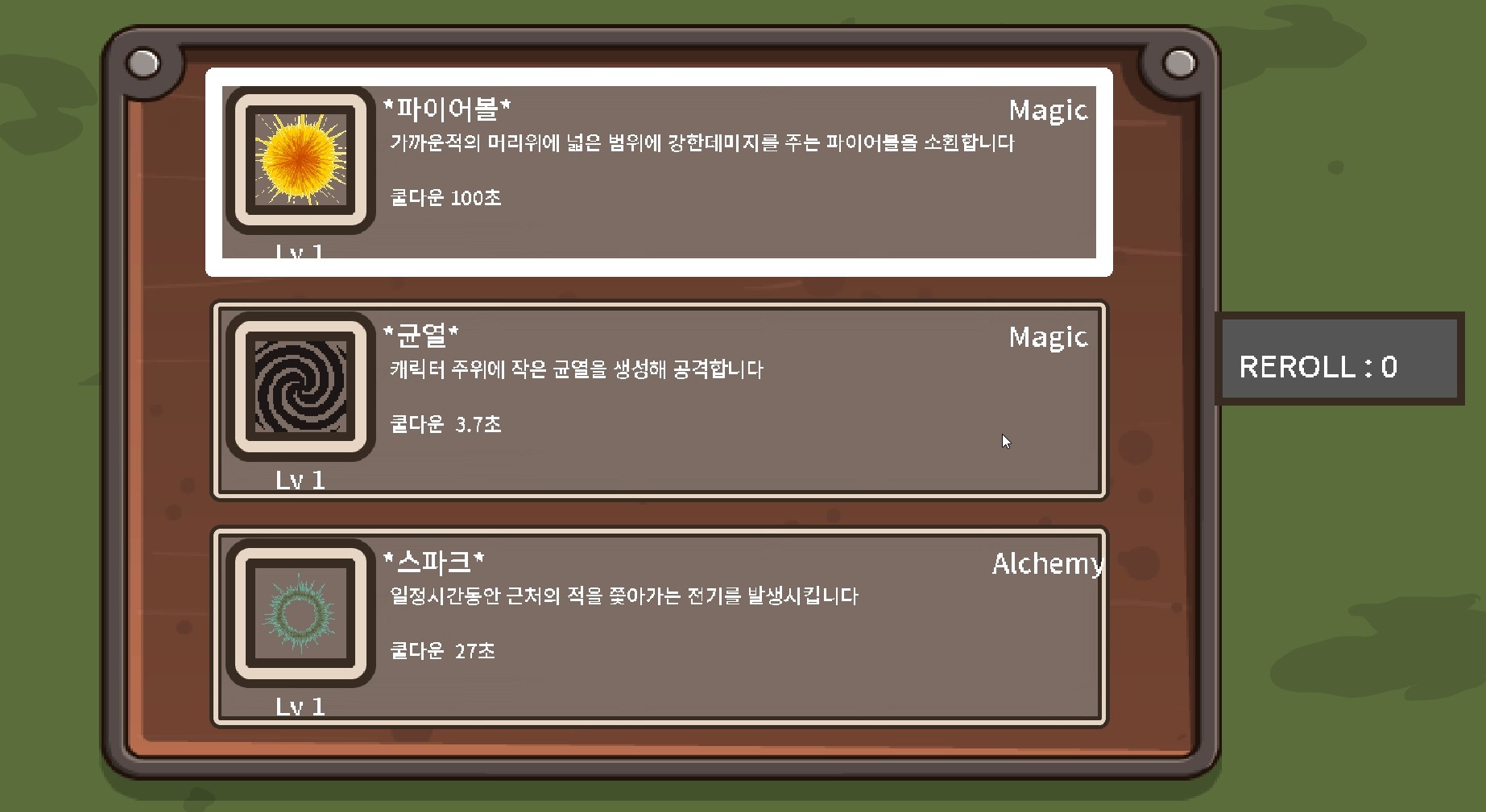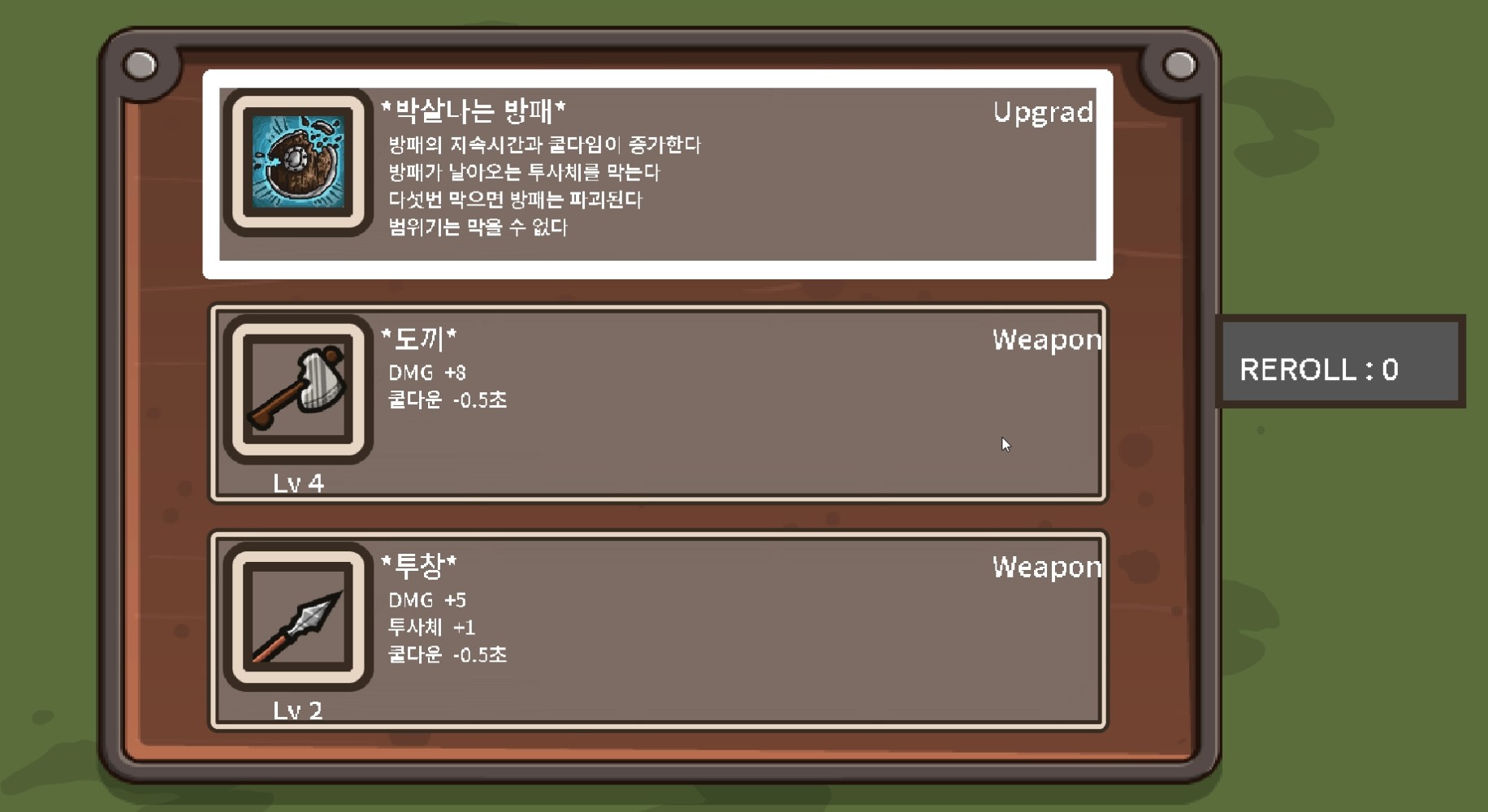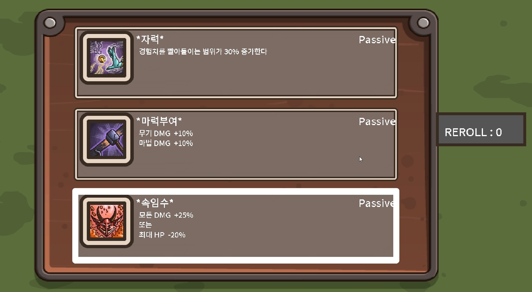 이렇게 운에 맡겨야 하지만 좋은 쪽으로만 풀린다면 강력한 효과를 누릴 수 있는 속임수, 강화 같은 선택지도 존재합니다