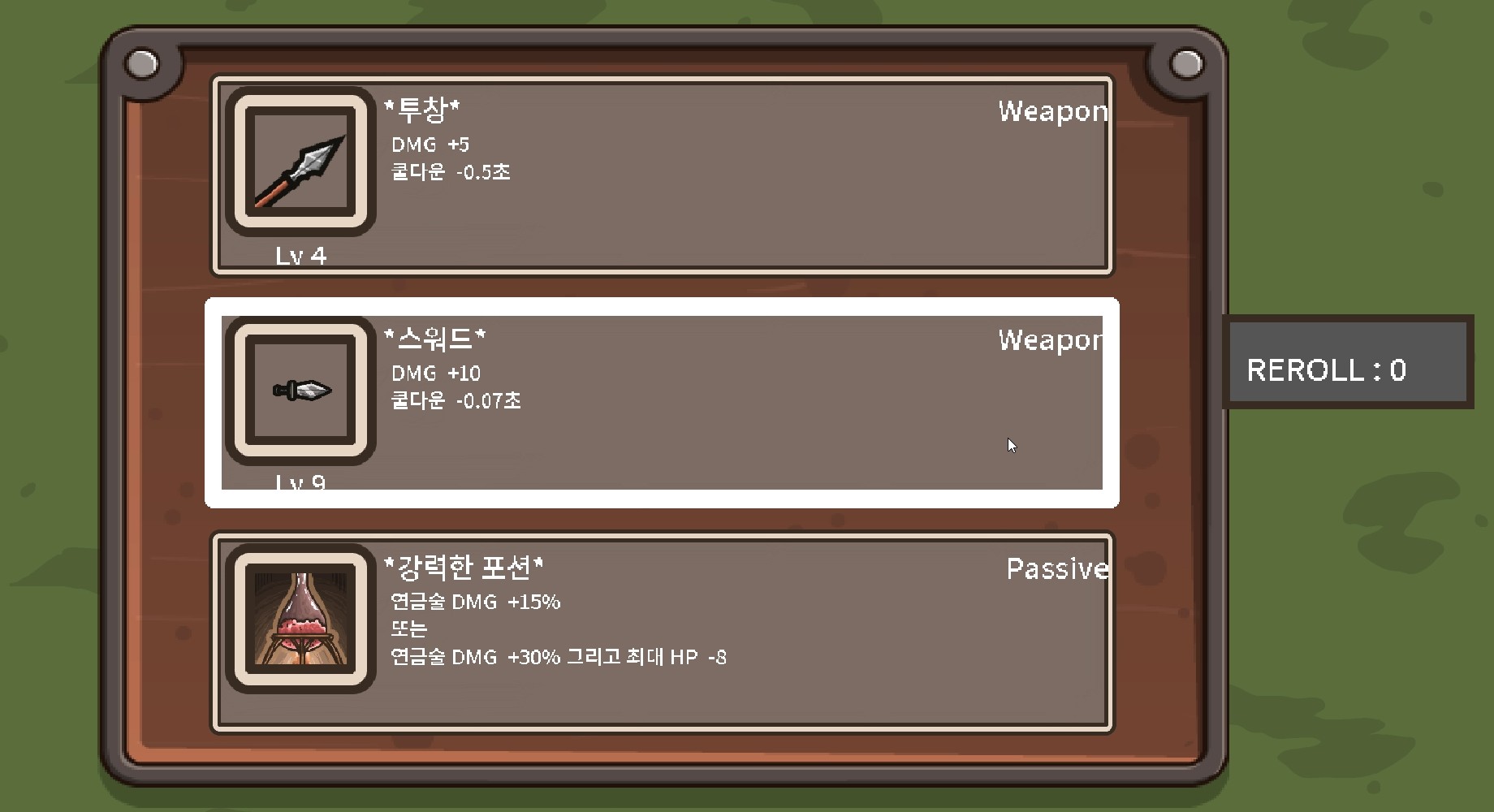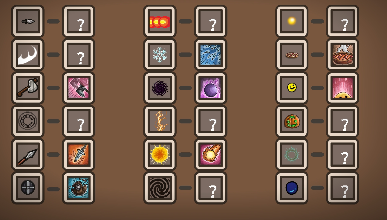 뱀서라이크 게임들이 모두 채용하고 있는 장치인 특정 무기의 레벨이 10에 도달할 시 패시브와 조합해 강력한 상위 무기로 업그레이드할 수 있는 조합 시스템도 서바이버 오브 더 저니에 제대로 갖춰져있어요
