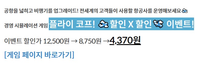 첫번째로 살 게임은 지금 폭탄 할인 중인 플라이 코프 입니다. 2달 전 나온 신작이 이 가격이라니...