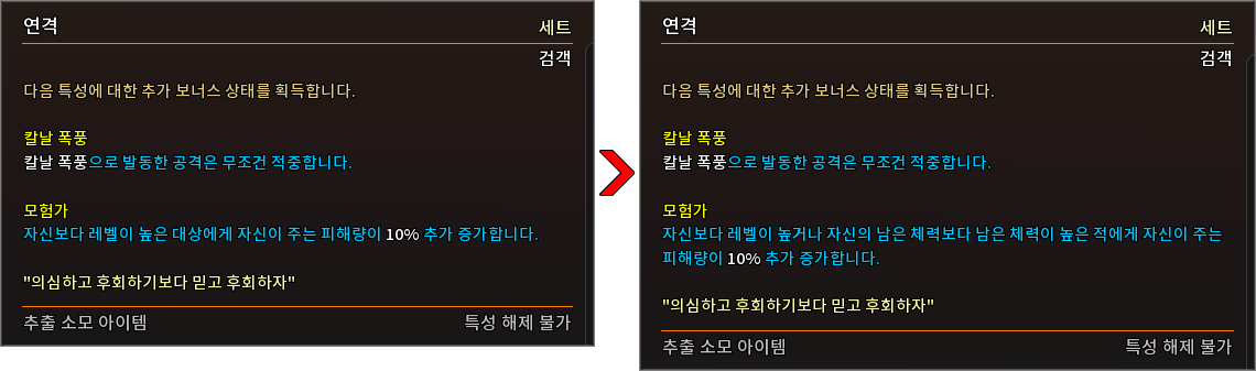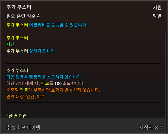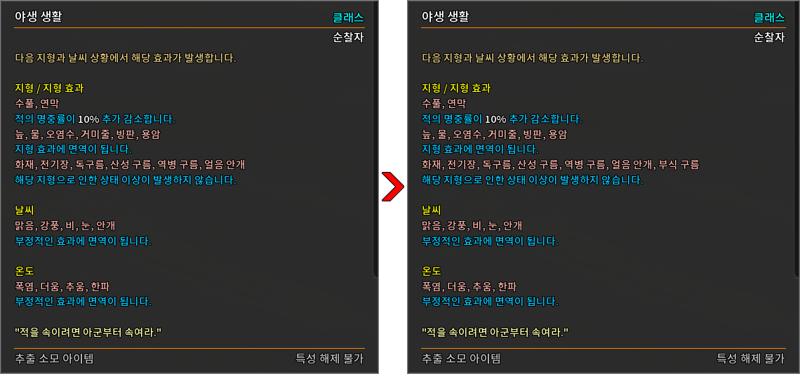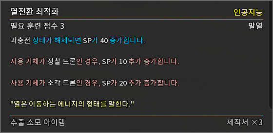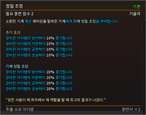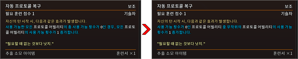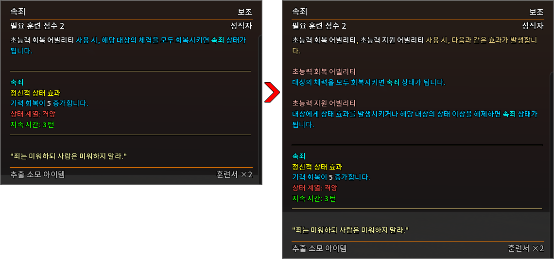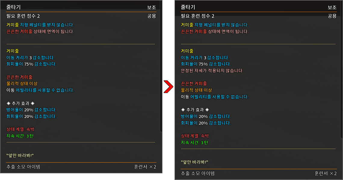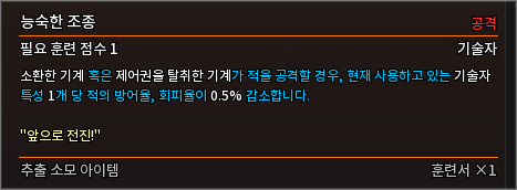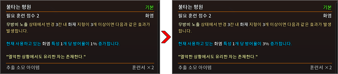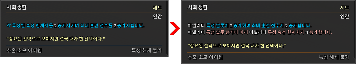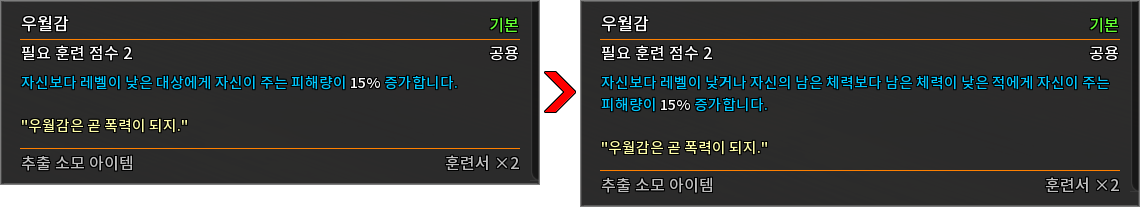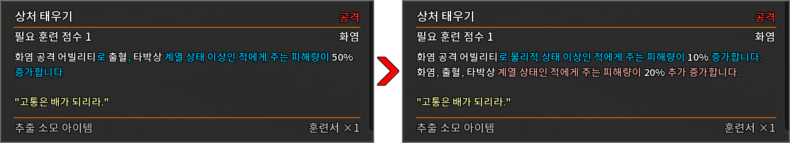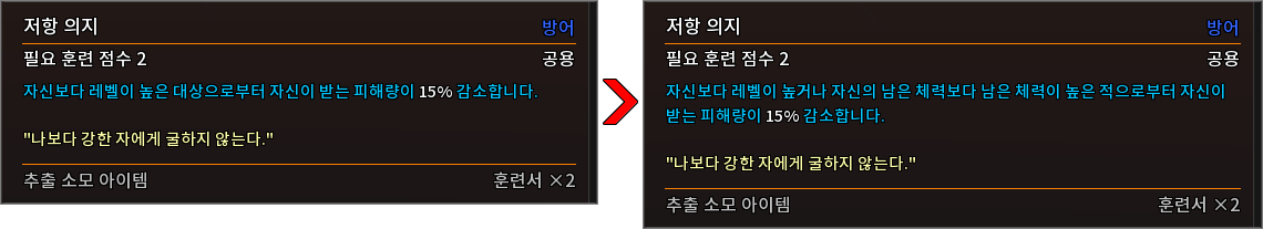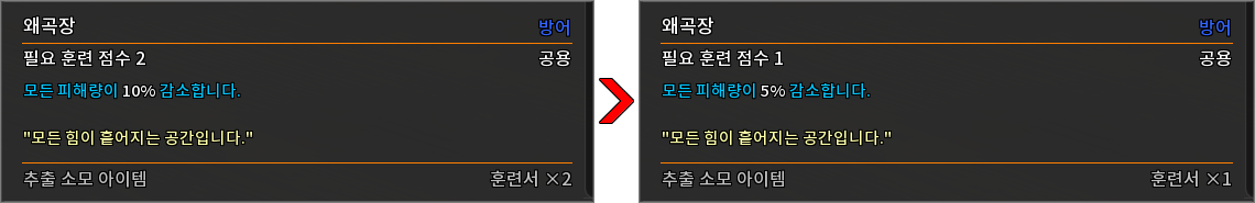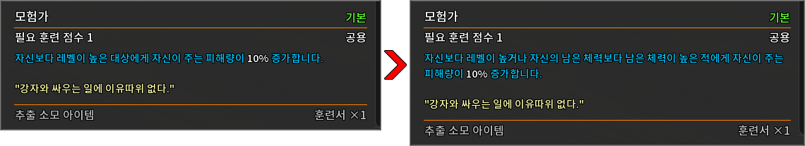 * 다음 특성의 필요 훈련 점수를 변경하였습니다.