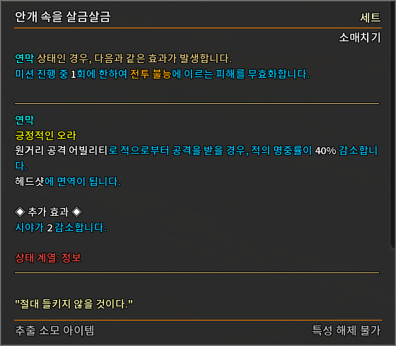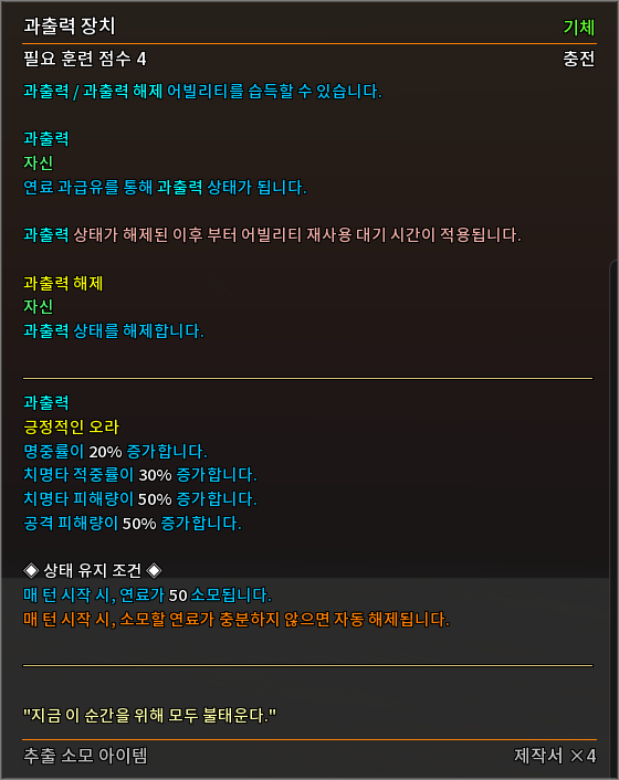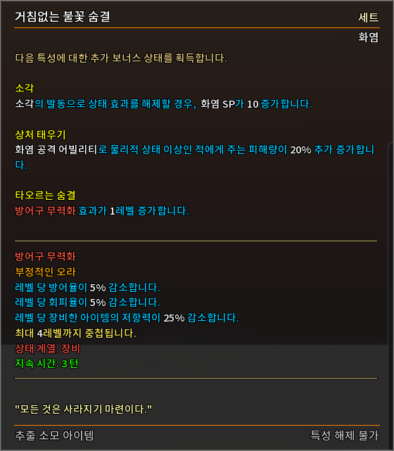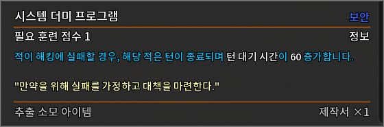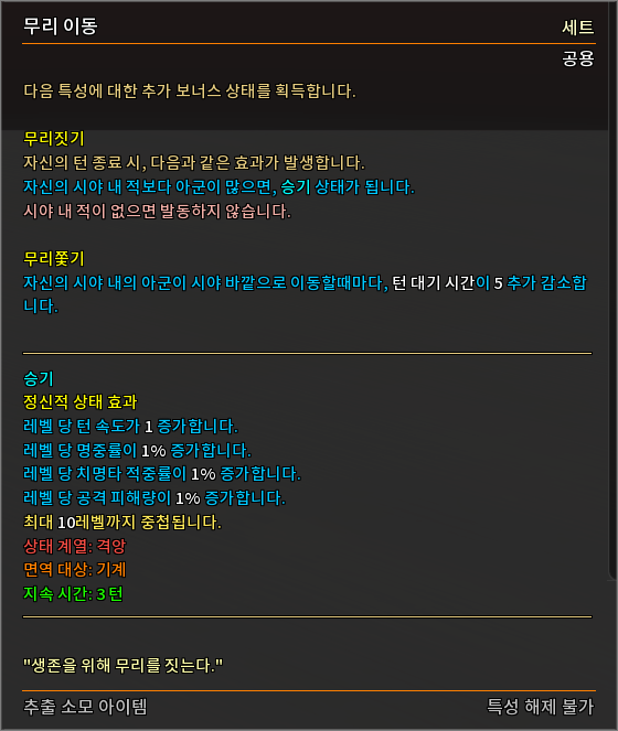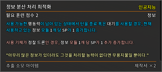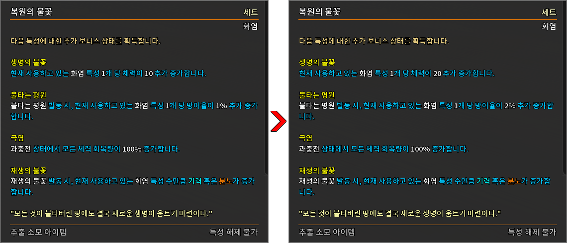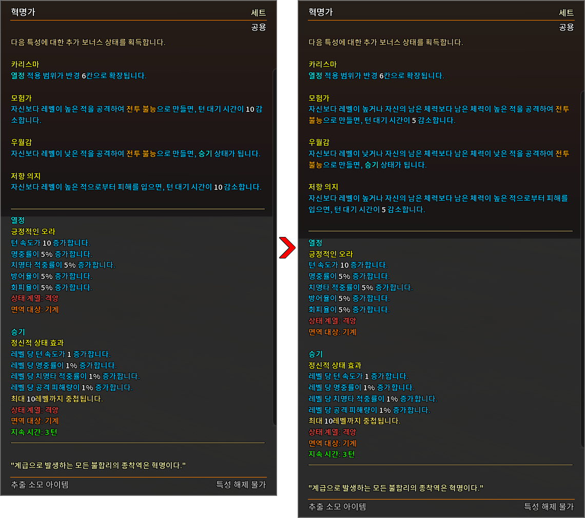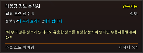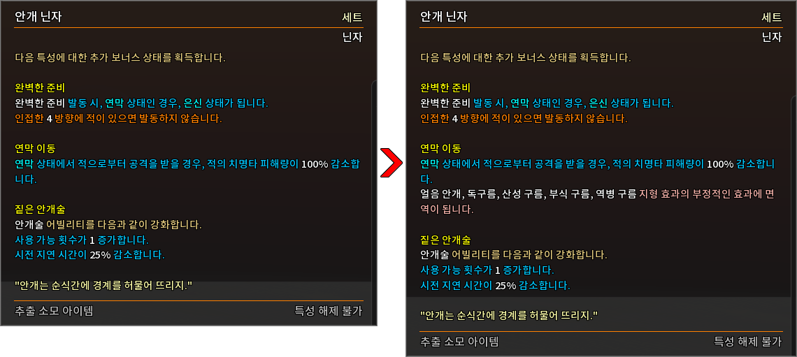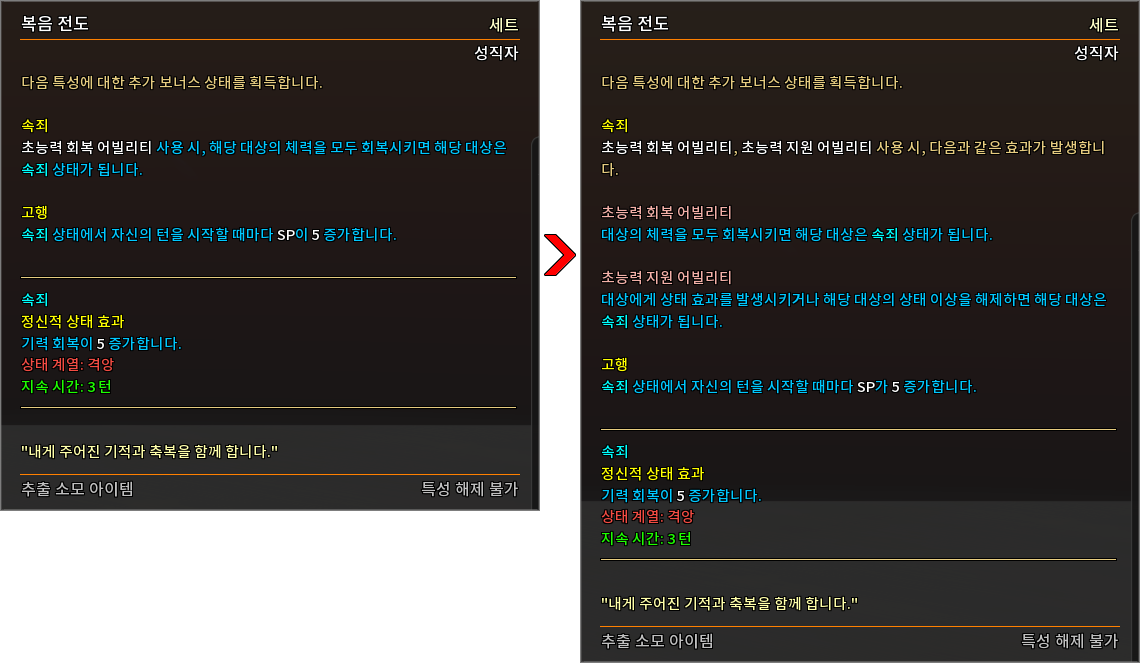 * 다음 특성의 필요 훈련 점수를 변경하였습니다.