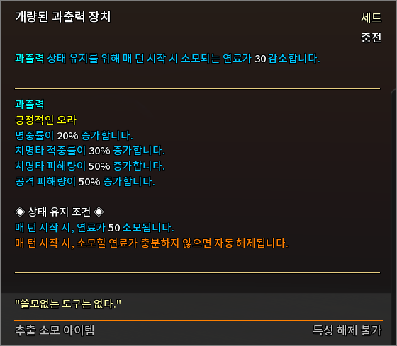 * 기계 제작에 필요한 부품의 속도와 연료 소모량을 소폭 변경하였습니다.