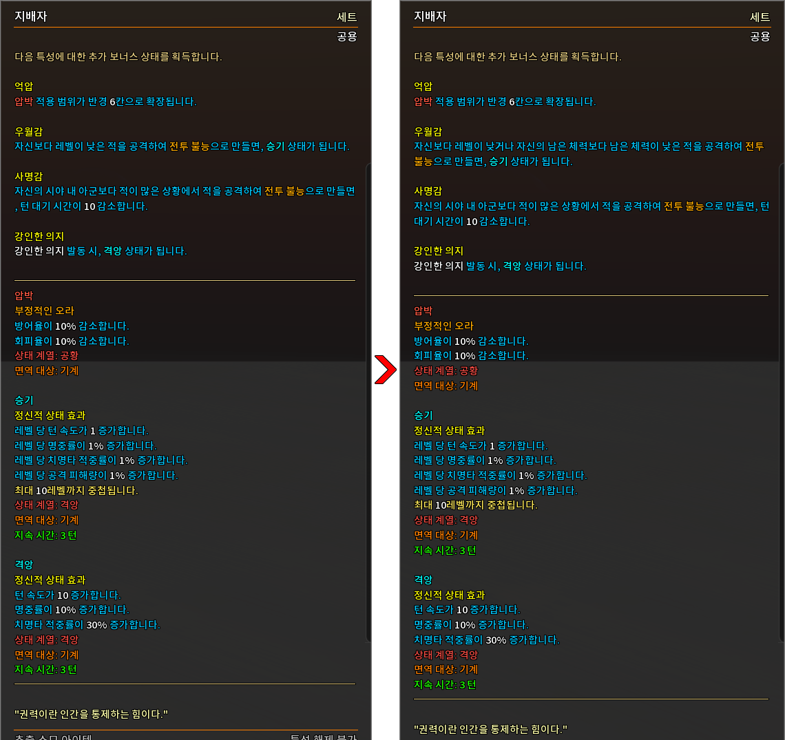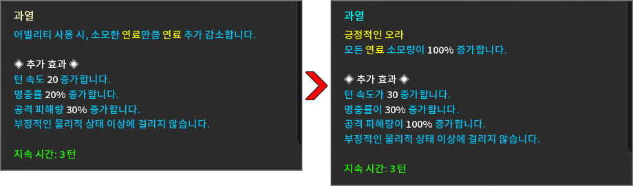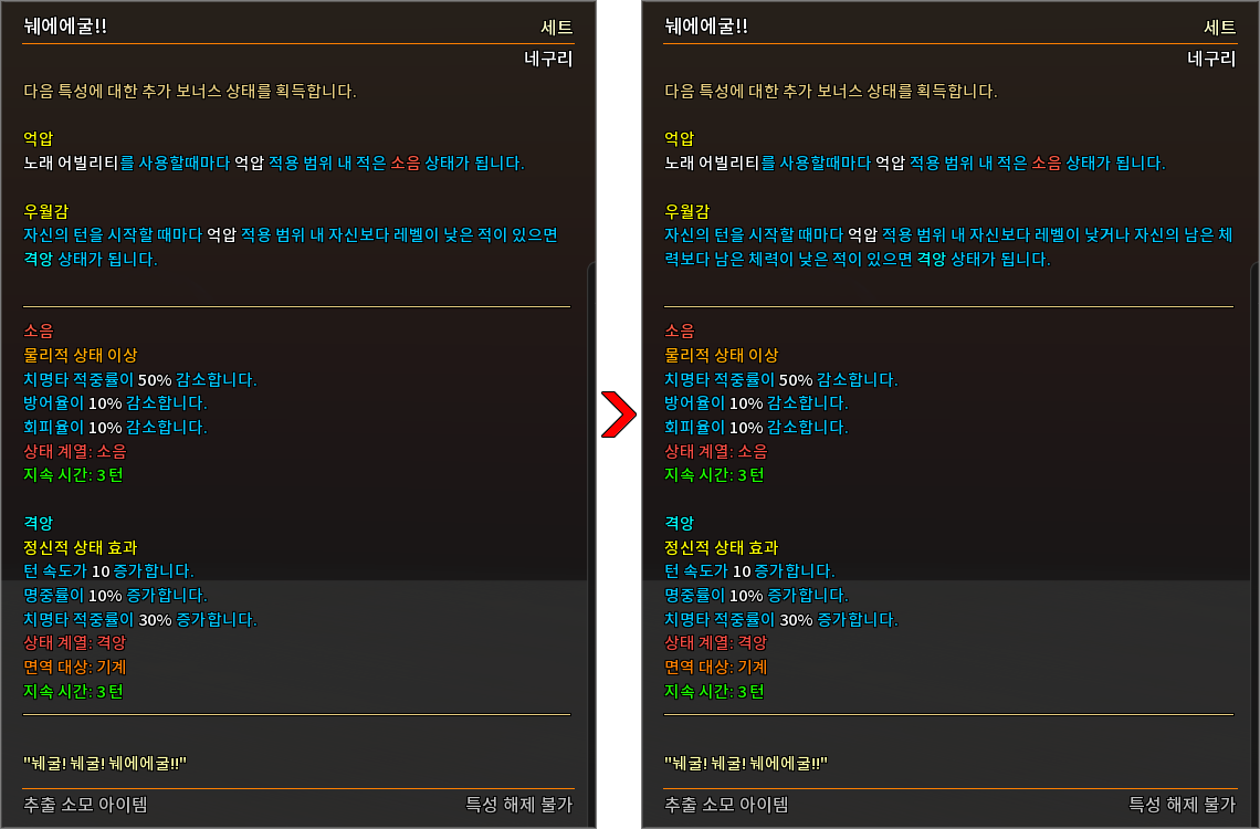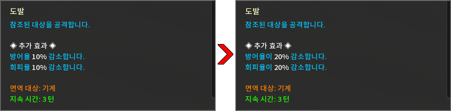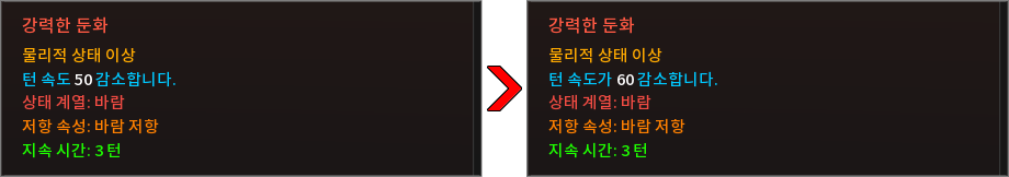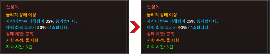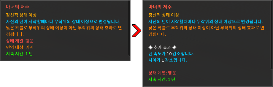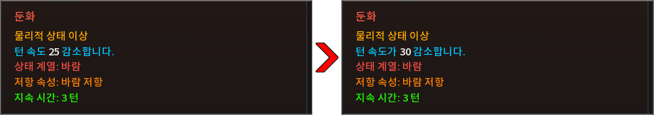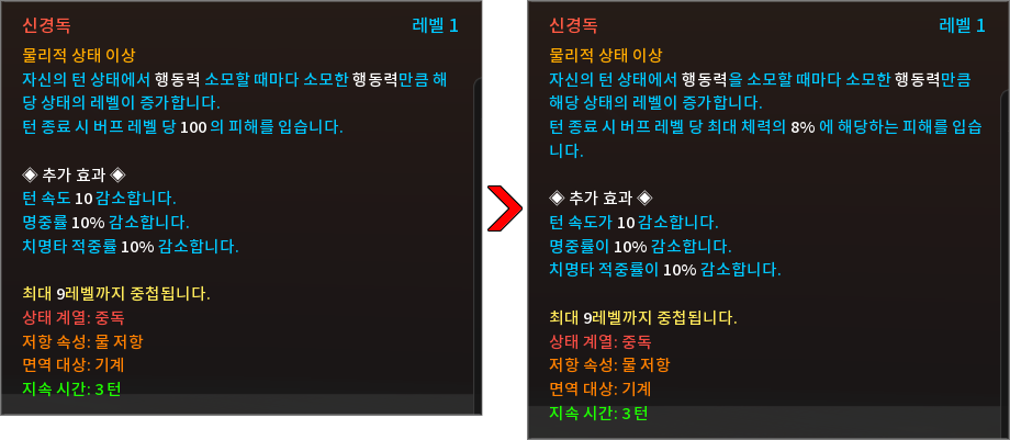 * 상태 효과 및 상태 이상을 다음과 같이 변경하였습니다.