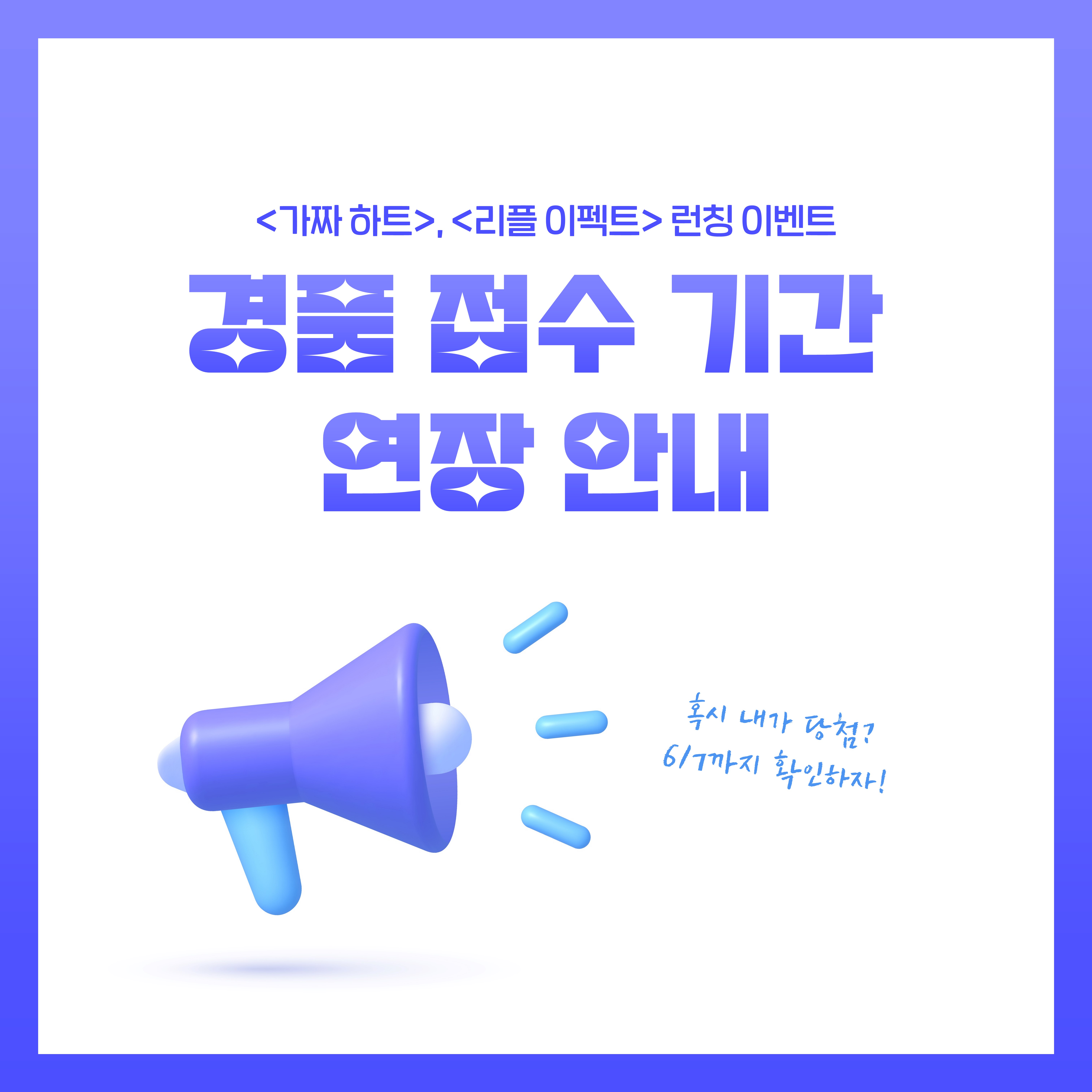 이벤트 경품 접수 기간이 2023년 6월 7일(수) 23:59까지 연장 결정되었음을 알려드립니다.