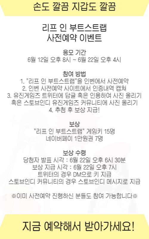 "리프 인 부트스트랩"의 사전예약 이벤트가 시작되었습니다.