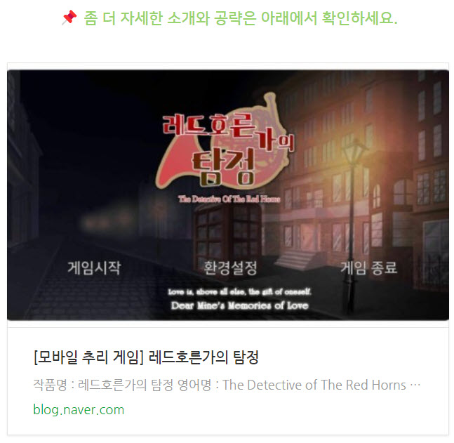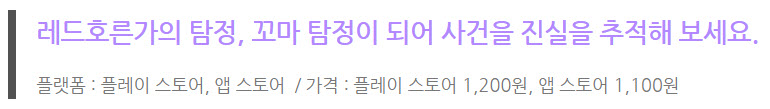 '레드호른가의 탐정'은 1인 개발자이신 olivecrow님께서 제작하신 작품으로, 2018년 3월 26일에 출시된 포인트 앤 클릭 방식의 2D 내러티브 추리 게임입니다.
