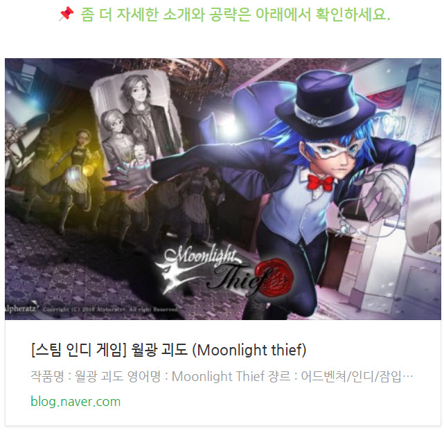 월광 괴도의 경우 인디 게임 특유의 투박함이나 아쉬움이 있어서 유저들의 평이 갈리긴 했지만 저는 재미나게 플레이한 작품이랍니다.