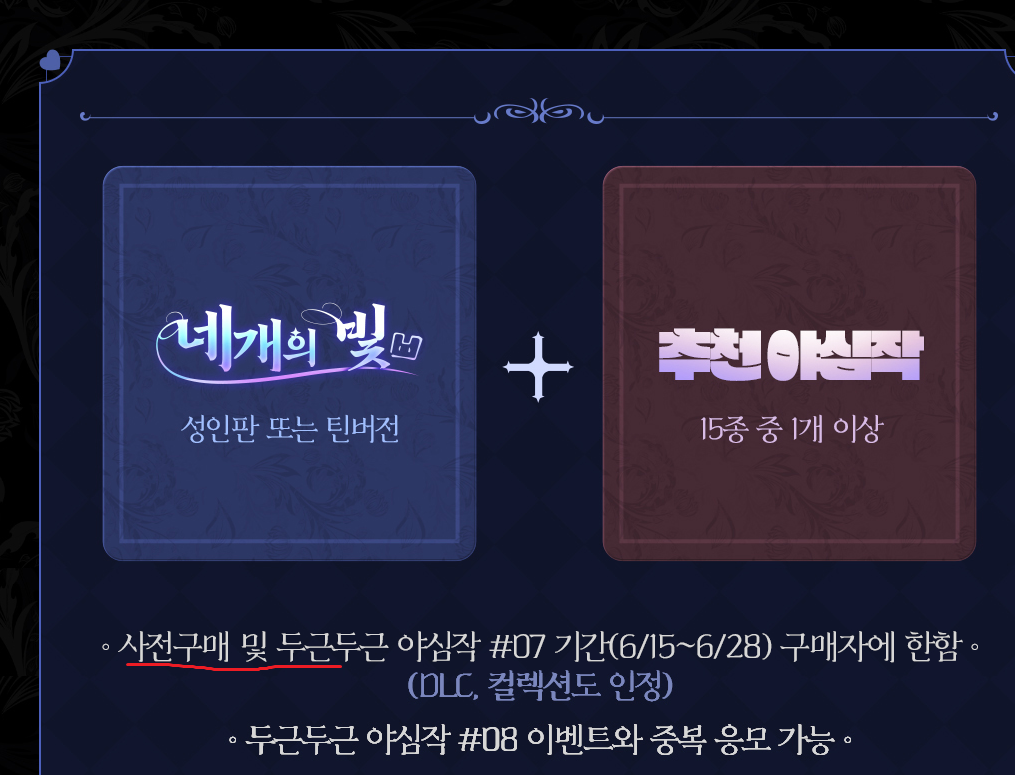 네개의 빛 기준으로 이벤트 하나는 본구매만, 다른 하나는 사전+본구매로 이렇게인거 같더라고요