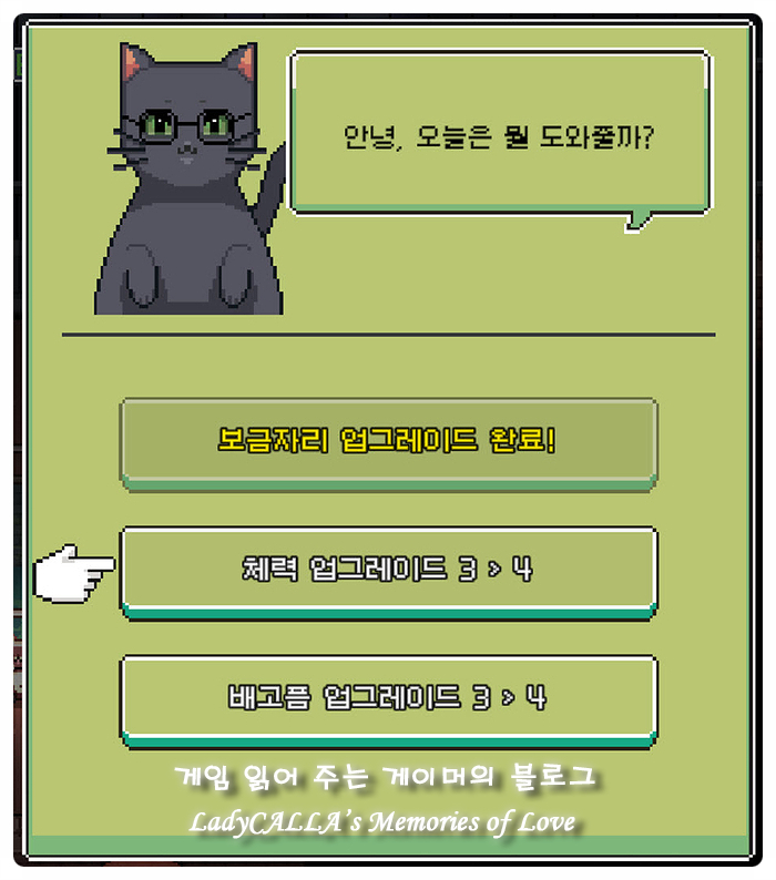 이들 업그레이드 시스템 역시 가게 해금과 동일하게 업그레이드에 요구되는 특정 재료들을 요구량만큼 가져와 제출하는 방식으로 진행됩니다.